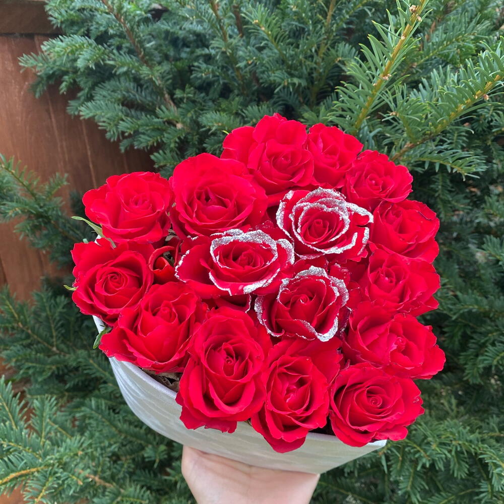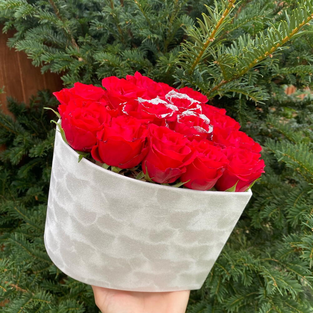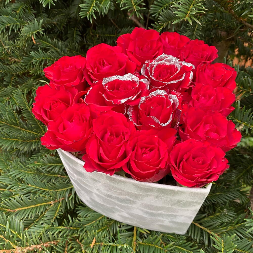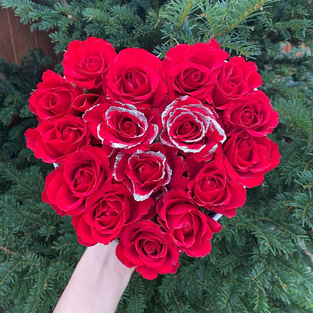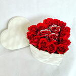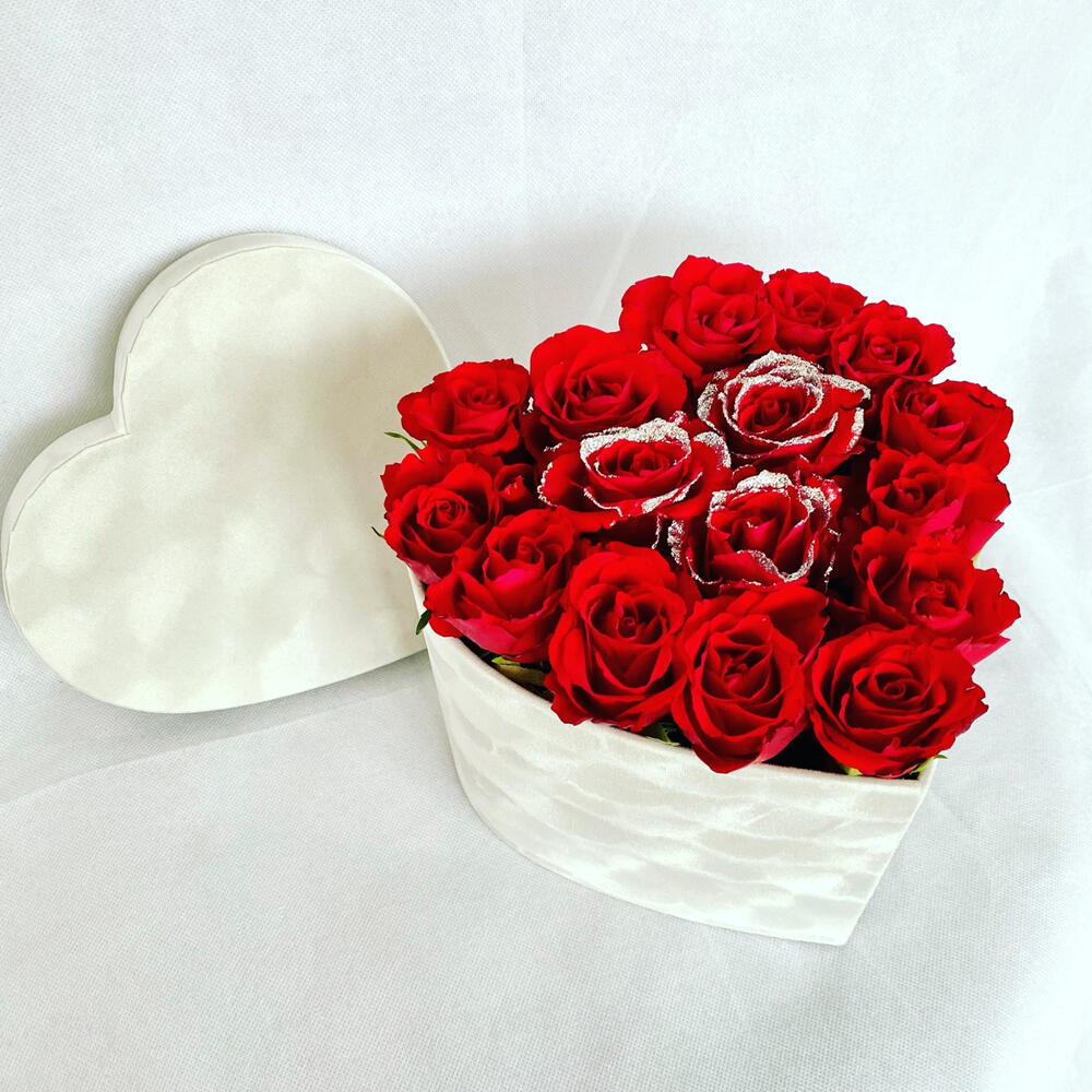 16 fresh red roses white white glitter in white velvet box