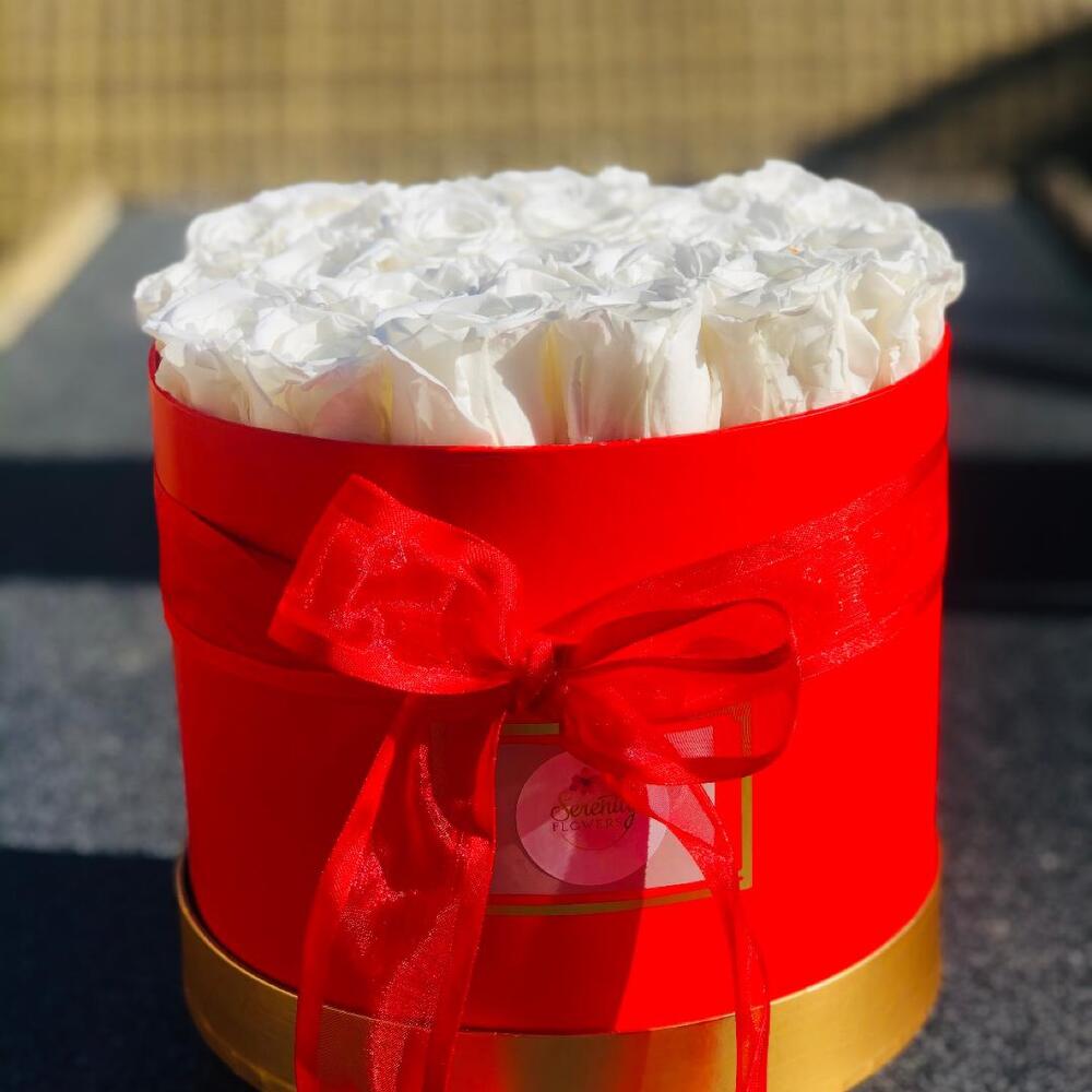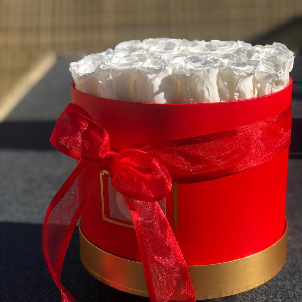 Infinity roses in red carton box. Hand-picked at peak freshness and carefully preserved . Each rose is specially preserved to stay fresh looking and maintain the beauty and colour for long time . With our amazing roses, we offer an elegant and luxurious way to create lasting moments with the people you cherish most. * Roses have long symbolized love, romance, passion, and friendship. They make the perfect for Valentine's Day, Anniversaries, Birthdays, Mother's day, Thanksgiving,Fathers day,Easter . This boxes contains 25-27roses . Diameter of each rose is 4- 5 cm . .Zero Maintenance Care. These 100% real roses need no water or maintenance