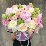 Viburnum - 7 pcs Peonies - 7 pcs carnations - 7 pcs roses - 10 pcs lisuantus - 7 pcs