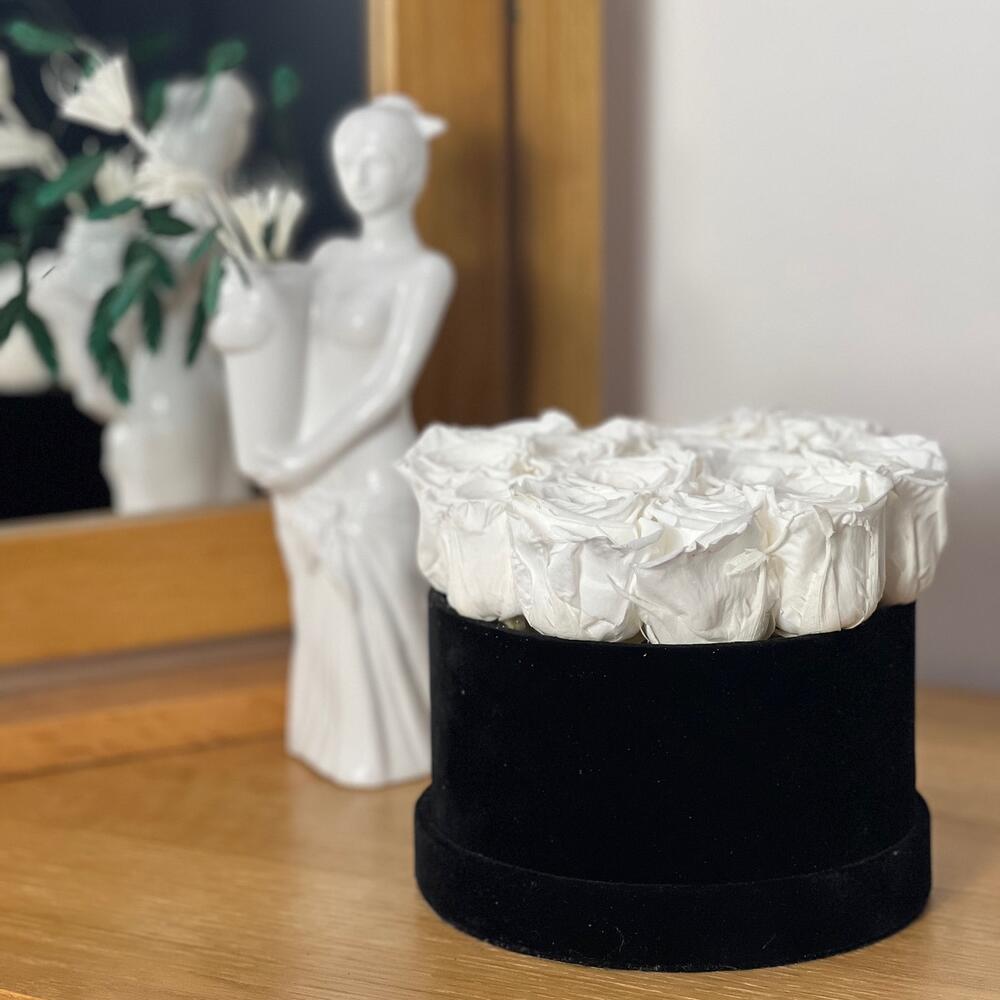 Infinity roses in Black box. Hand-picked at peak freshness and carefully preserved . Each rose is specially preserved to stay fresh looking and maintain the beauty and colour for long time . With our amazing roses, we offer an elegant and luxurious way to create lasting moments with the people you cherish most. * Roses have long symbolized love, romance, passion, and friendship. They make the perfect for Valentine's Day, Anniversaries, Birthdays, Mother's day, Thanksgiving,Fathers day,Easter . This boxes contains 12-15 roses . Diameter of each rose is 4- 5 cm . .Zero Maintenance Care. These 100% real roses need no water or maintenance