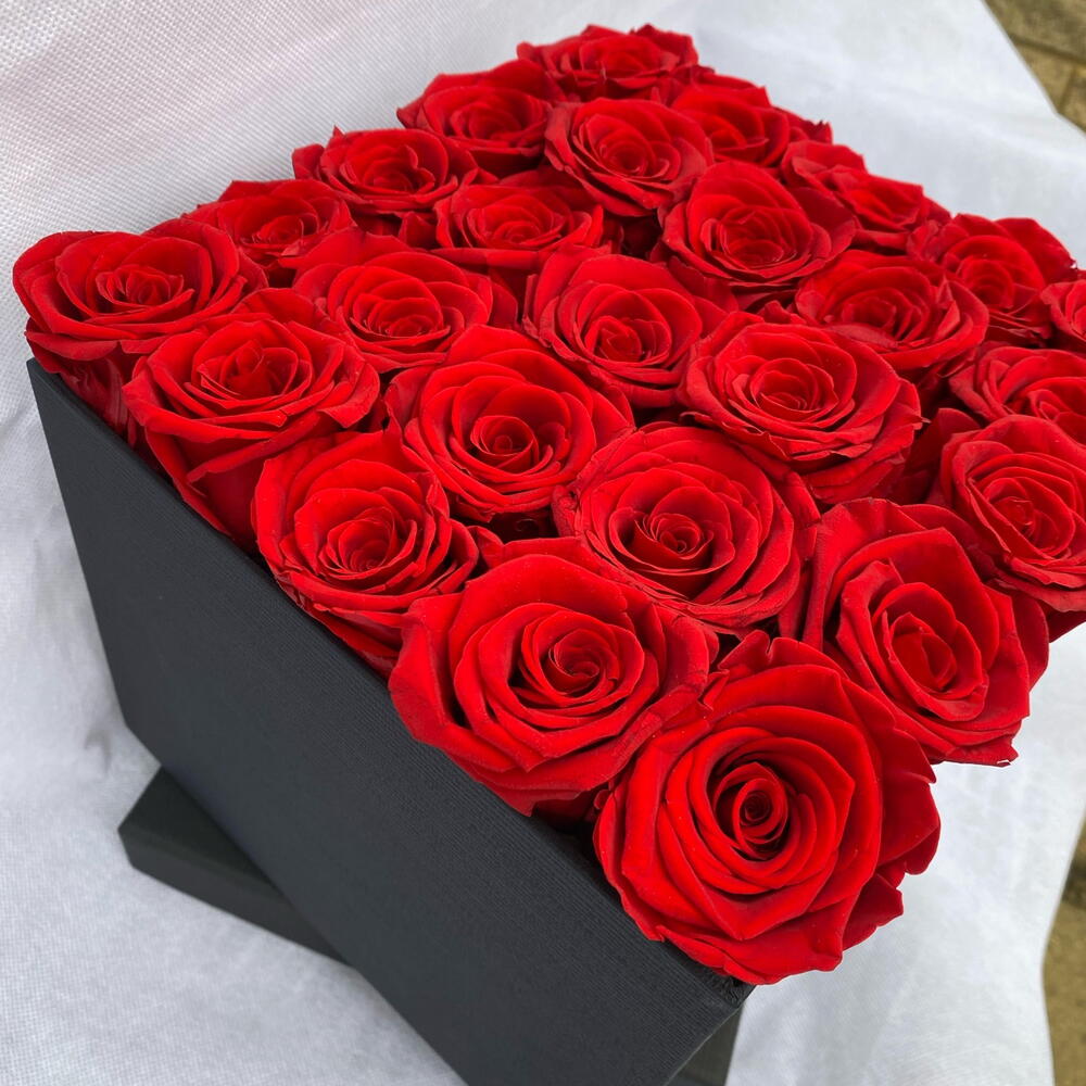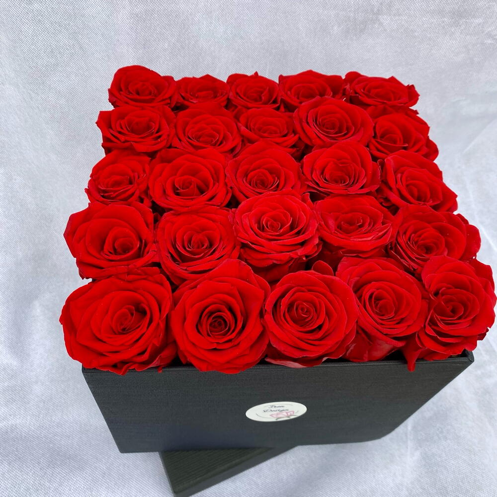 Real rose taht long last up to 3 years 25 Red Roses in large square box