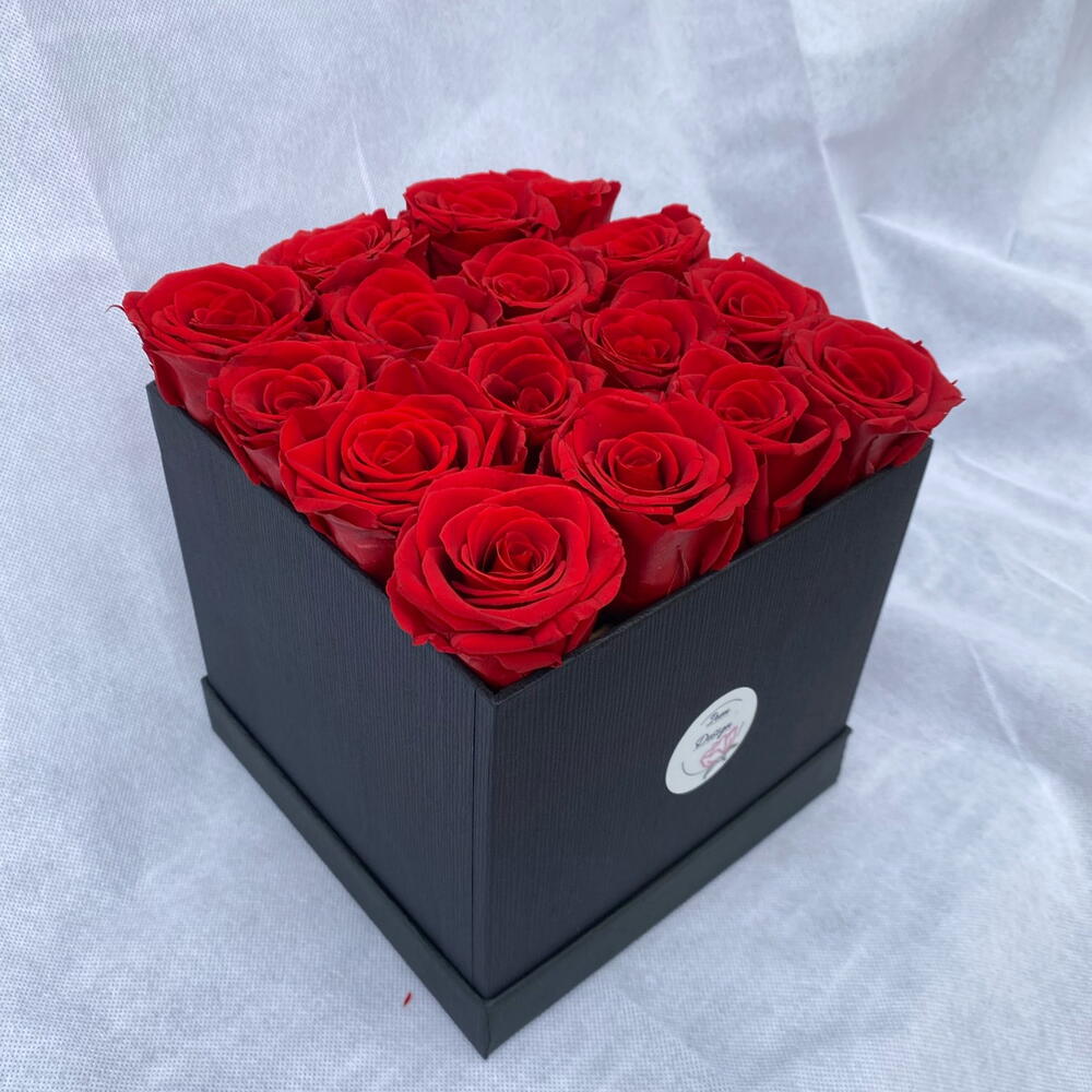 Real rose taht long last up to 3 years 16 Red Roses in black square box