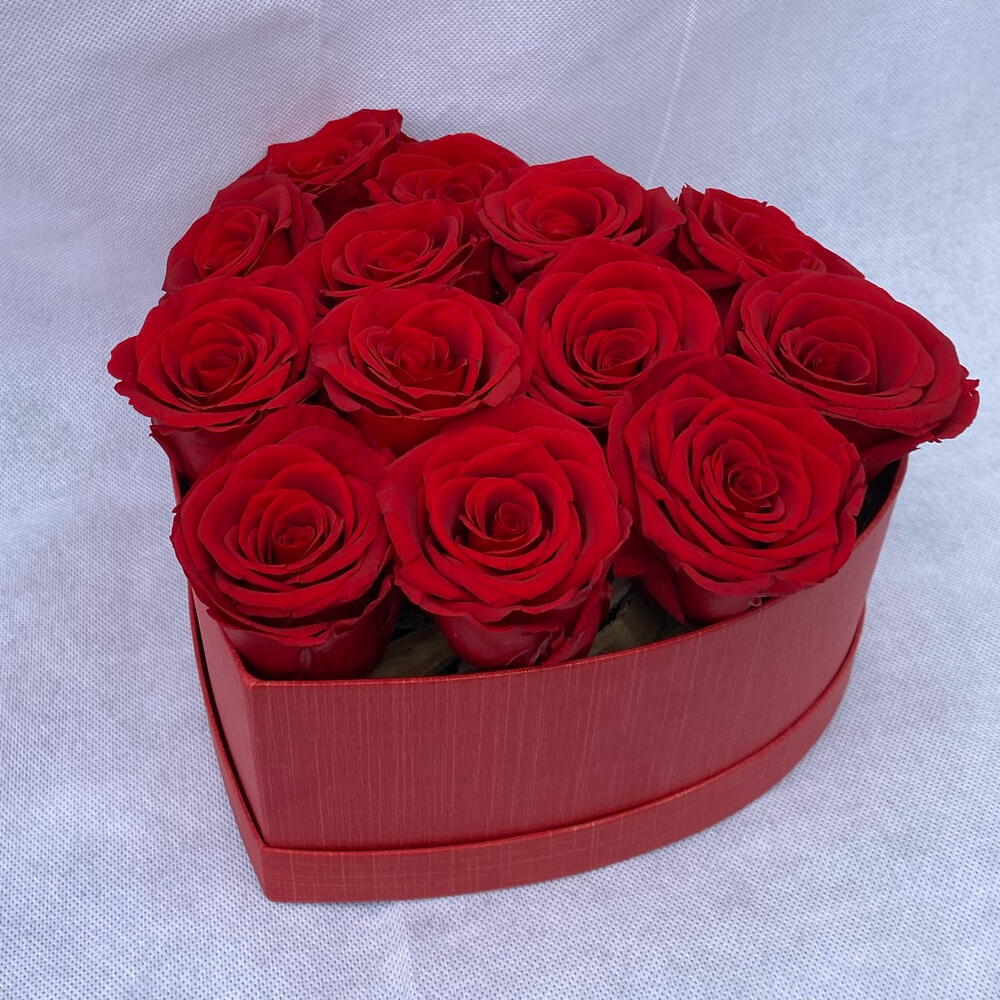 heart box of red rose - 13 pcs