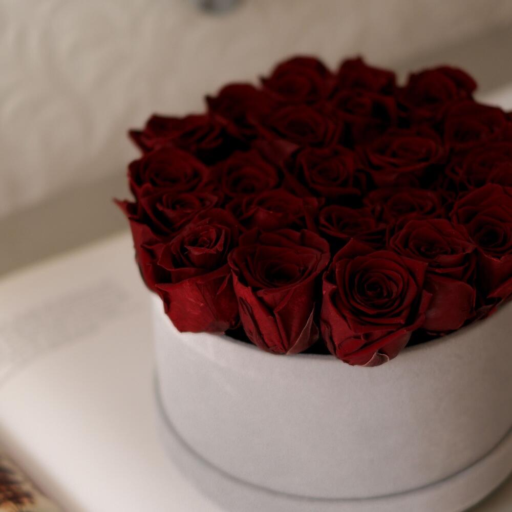 Infinity roses in Velvet grey box. Hand-picked at peak freshness and carefully preserved . Each rose is specially preserved to stay fresh looking and maintain the beauty and colour for long time . With our amazing roses, we offer an elegant and luxurious way to create lasting moments with the people you cherish most. * Roses have long symbolized love, romance, passion, and friendship. They make the perfect for Valentine's Day, Anniversaries, Birthdays, Mother's day, Thanksgiving,Fathers day,Easter . This boxes contains 12-15 roses . Diameter of each rose is 4- 5 cm . .Zero Maintenance Care. These 100% real roses need no water or maintenance