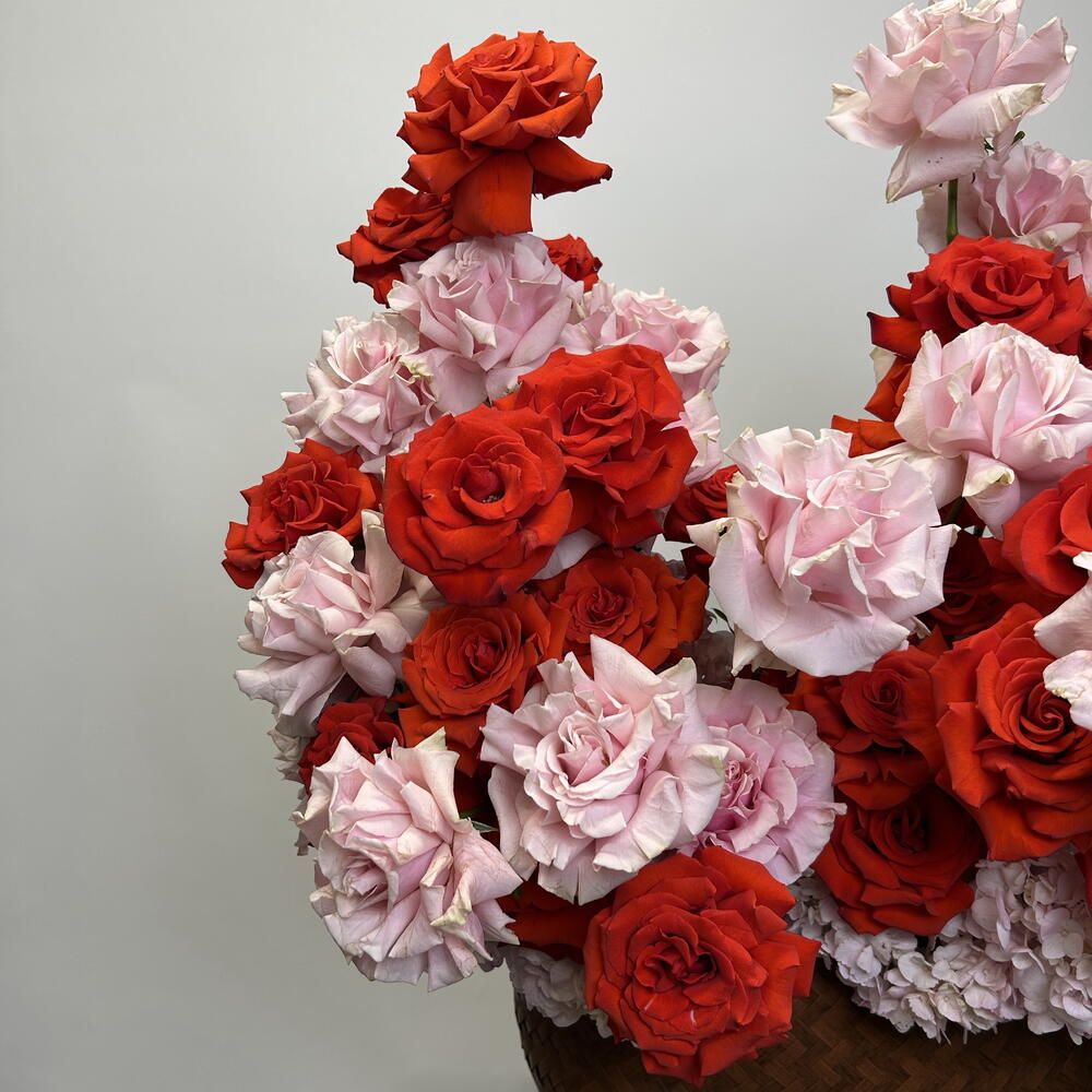 hydrangeas pink - 6 pcs rose pink mondial - 30 pcs rose nina - 30 pcs