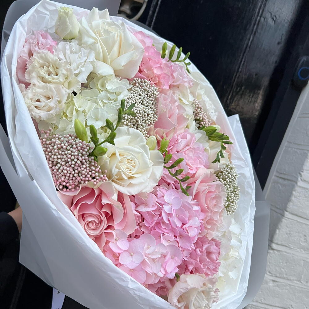 the flowers turned out to be very different to the reference. there was also no picture sent before the delivery to approve the bouquet. the stock was confirmed both on the app and by the shop, confirming that they can do this bouquet. there were specific ingredients confirmed to be in stock: 5 hydrangeas. they were absent at the end and i only found out after the delivery. very disappointed and not worth the money.