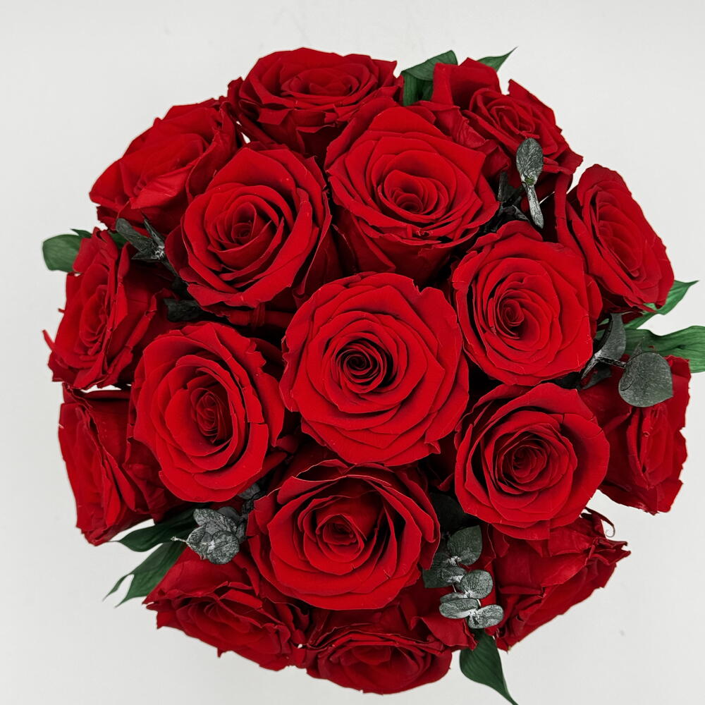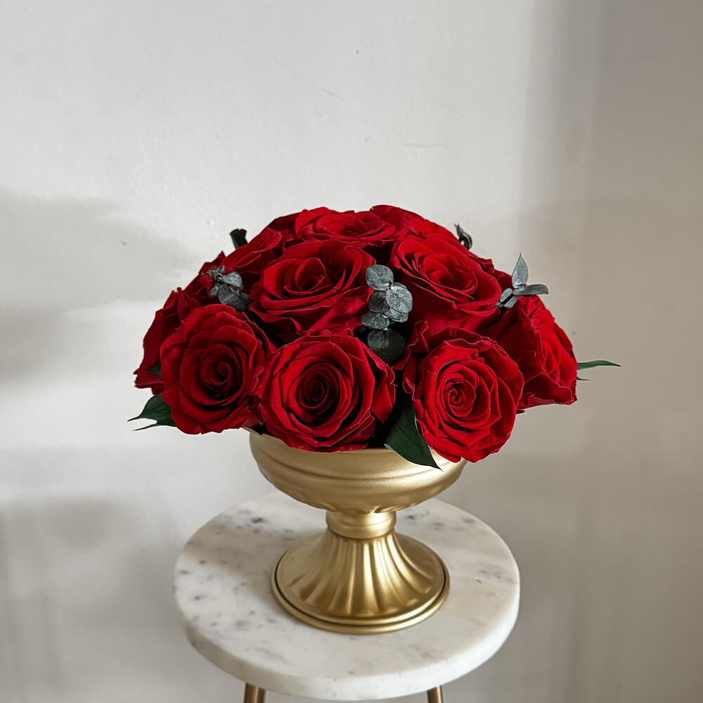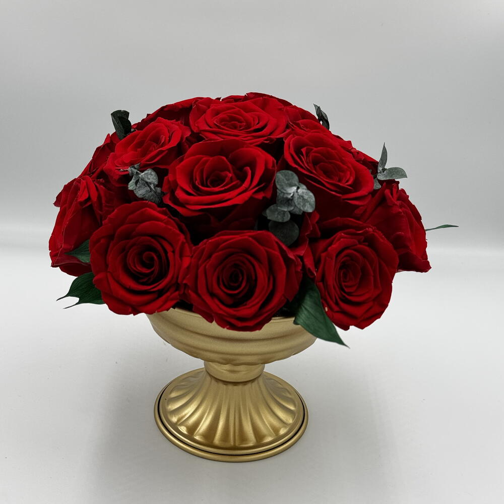 15 head beautiful forever rose red in gold vase - 2 pcs