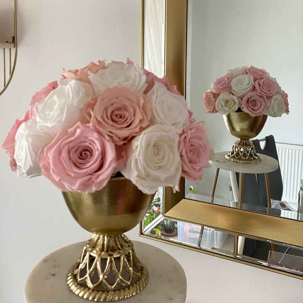 Beautiful forever Roses in golden vase