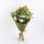 Delicate white alstroemeria and lisanthus blend harmoniously with the playful daisy and green bell. This arrangement captures the essence of natural beauty, evoking the sights and scents of a vibrant garden. Let this bouquet bring the beauty of nature indoors to brighten any space.