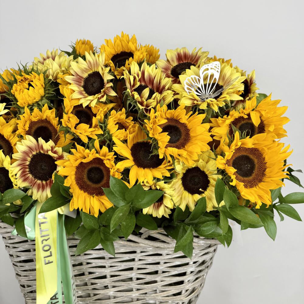 Golden Sunshine 40 Sunflowers Basket