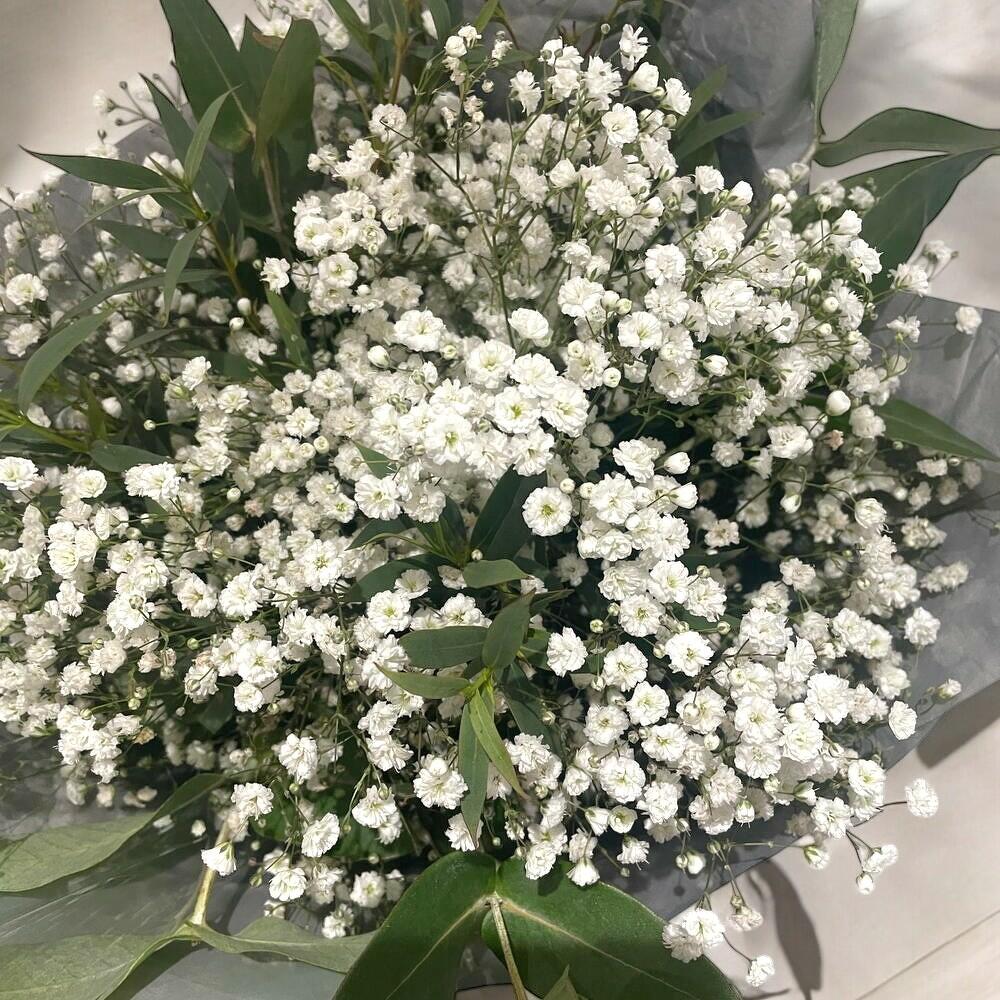 The Pure Cloud Gypsophila Bouquet is a timeless and elegant floral choice perfect for weddings, christenings, minimal interiors, or simply as a gentle gift for someone special. Featuring 20 stems of delicate white gypsophila (baby’s breath), varied fresh foliage, and wrapped in two layers of clear cellophane, this bouquet is light, airy, and graceful. Finished with a classic decorative bow, it’s a lovely representation of purity and simplicity. Care Recommendations: Place the bouquet in a clean vase with fresh water as soon as possible. Trim the stems at an angle to allow for better water absorption. Avoid direct sunlight and heat sources to keep the flowers looking fresh. Gypsophila can last longer when kept cool and misted lightly.