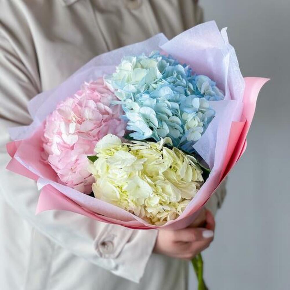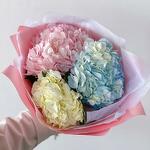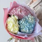 Celebrate the beauty of nature with our bouquet of 3 multicolored hydrangeas. Each bloom showcases a unique hue, creating a vibrant and harmonious display. Arranged with care, this bouquet brings a burst of color and joy to any space, making it an ideal gift for any occasion.