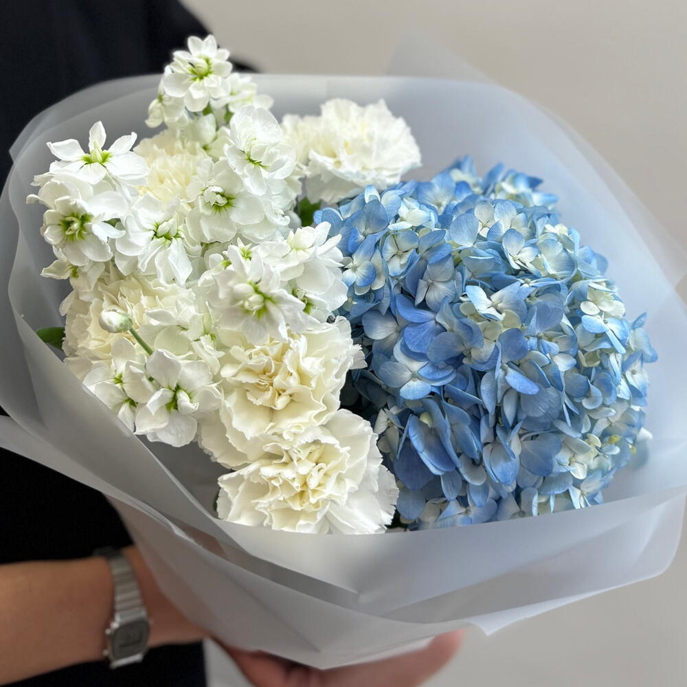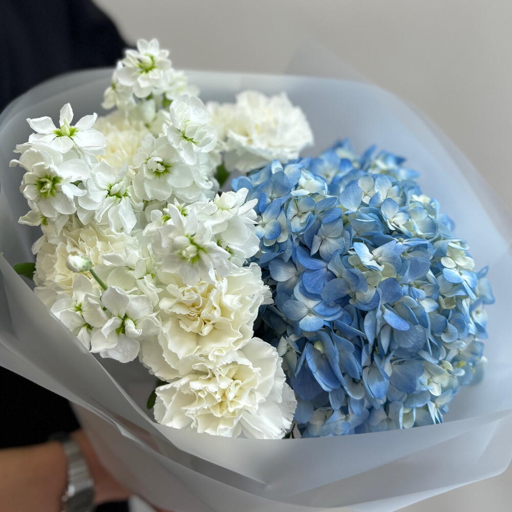 Peony rose - 7 pcs blue hydrangea - 1 pcs