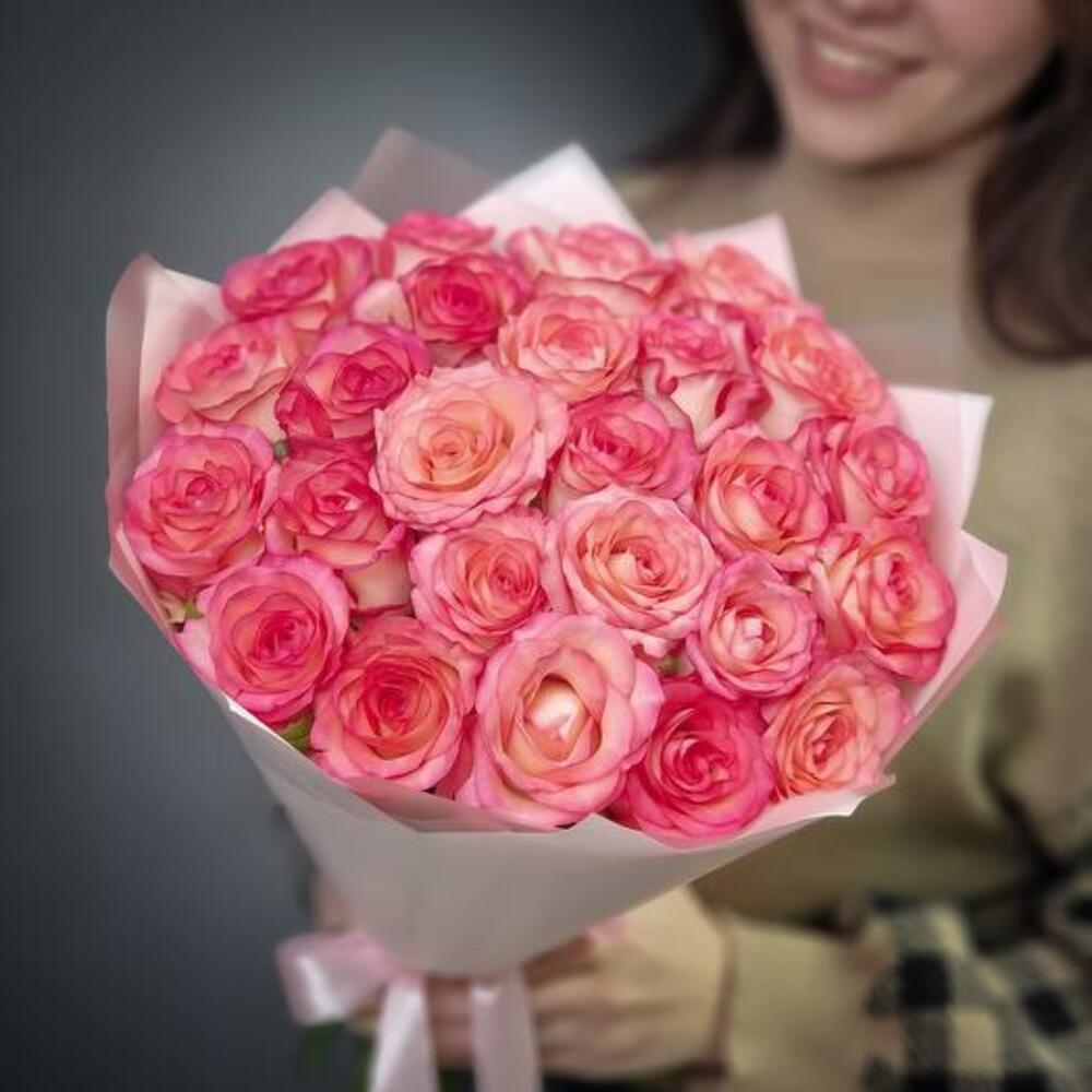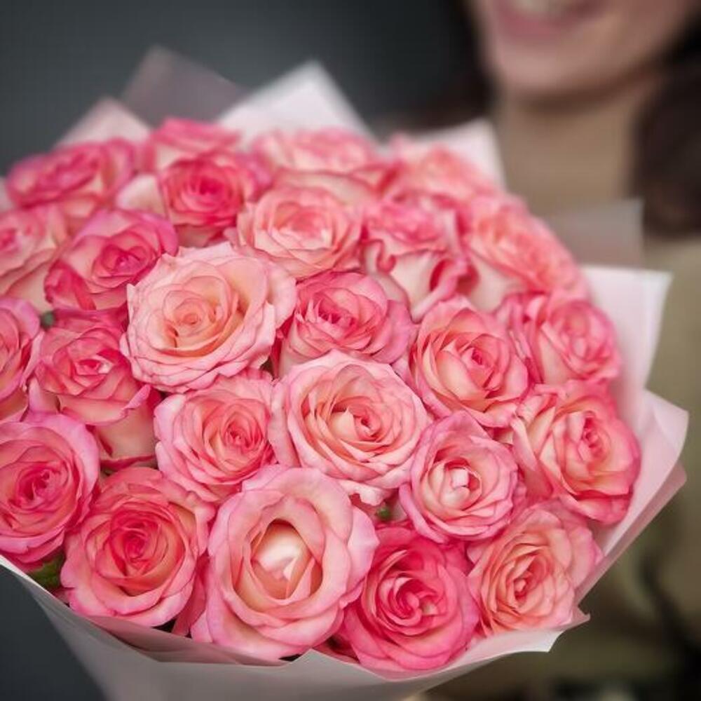Immerse yourself in the beauty of our bouquet, featuring 25 exquisite pink roses. Each rose captivates with its delicate petals and elegant shade of pink, creating an atmosphere of tenderness and sophistication. Expertly arranged and elegantly wrapped, its a stunning gift that will be cherished.