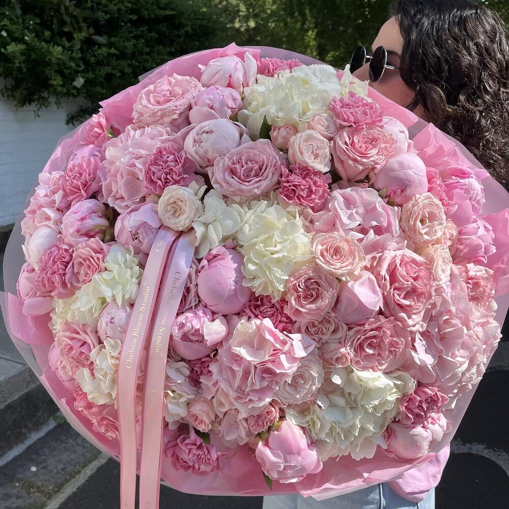 Peonies - 20 pcs carnations - 10 pcs hydrangeas pink - 10 pcs roses - 15 pcs