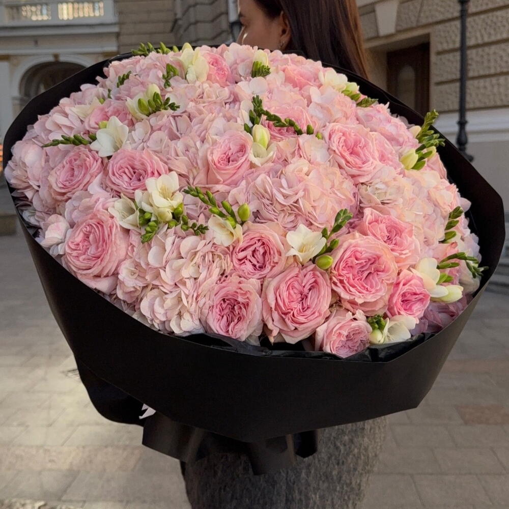 Hydrangea - 10 pcs fresia - 10 pcs roses - 15 pcs