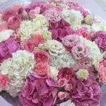 Eustoma - 7 pcs Spray rose - 5 pcs dianthus - 5 pcs hydrangea mix - 8 pcs