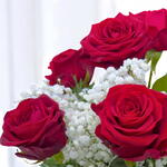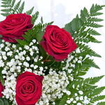 gypsophilia - 5 pcs leather leaf - 5 pcs red naomi roses - 6 pcs
