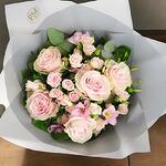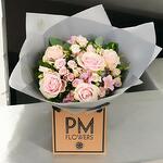 Say Wow! with Mamma Mia, a beautifully handcrafted bouquet that captures the soft romance and grace of pastel blooms. This charming arrangement features large-headed pink roses, dainty pink spray roses, and delicate lisianthus, all artfully nestled in lush seasonal foliage and presented in a sleek signature PM Flowers gift box. Its delicate hues of blush and soft green make it a versatile floral gift that’s perfect for birthdays, thank-yous, anniversaries, or just because. It’s a timeless expression of affection and beauty in every bloom. Care Instructions: To keep your Mamma Mia bouquet fresh, keep it in a cool place away from direct sunlight, heaters, or drafts. If displayed with water, refresh the water daily and trim stems at a diagonal every 2 days. Remove any fading blooms or leaves for a long-lasting, pristine appearance.