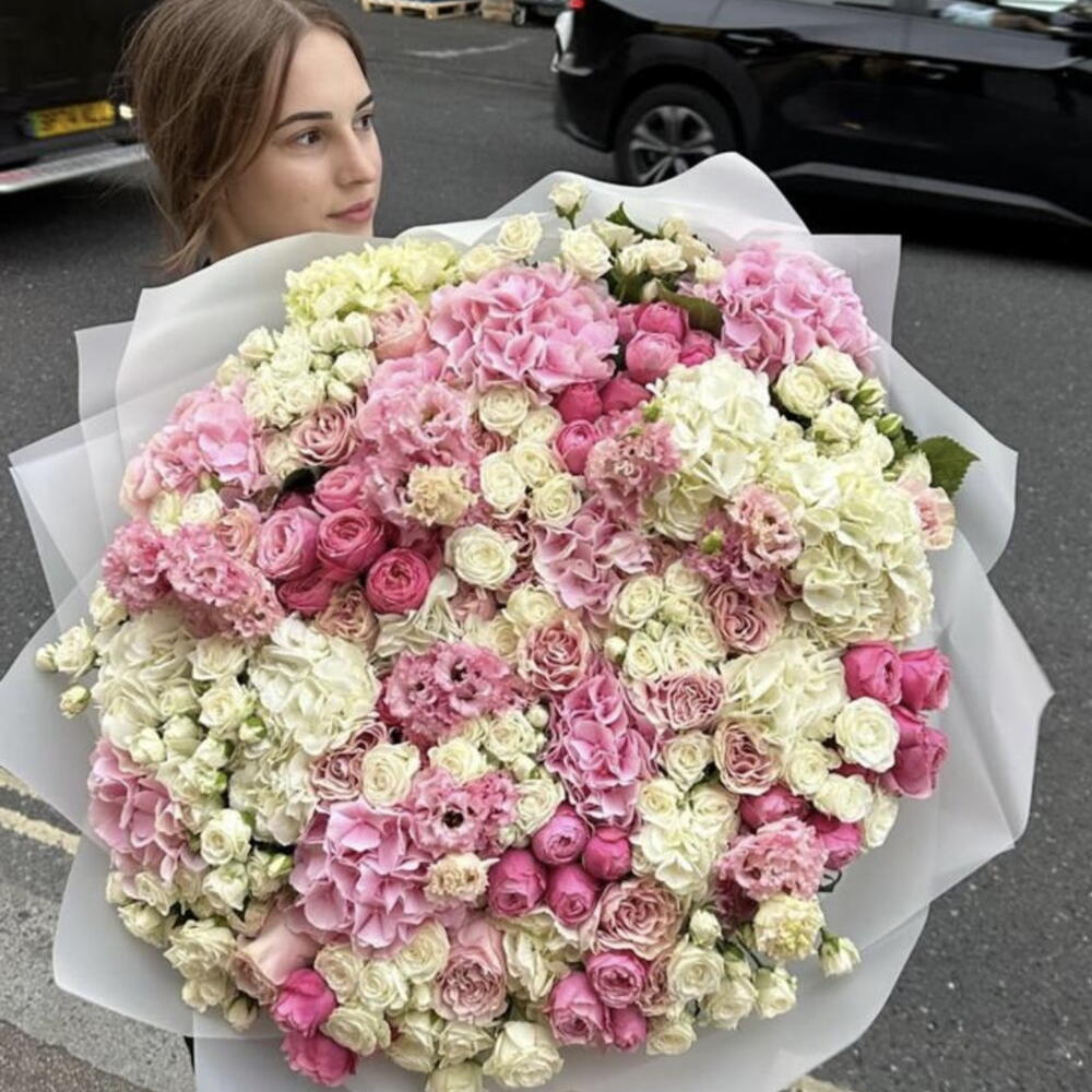 Hydrangea - 10 pcs roses - 50 pcs spray roses - 20 pcs