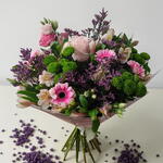 A beautifully hand-tied bouquet featuring a stunning blend of pink, purple, and green blooms, thoughtfully arranged with fresh seasonal greenery. Vibrant yet elegant, this arrangement captures the freshness of spring and makes a truly special gift to celebrate Mum this Mother’s Day. 💕💜🌿