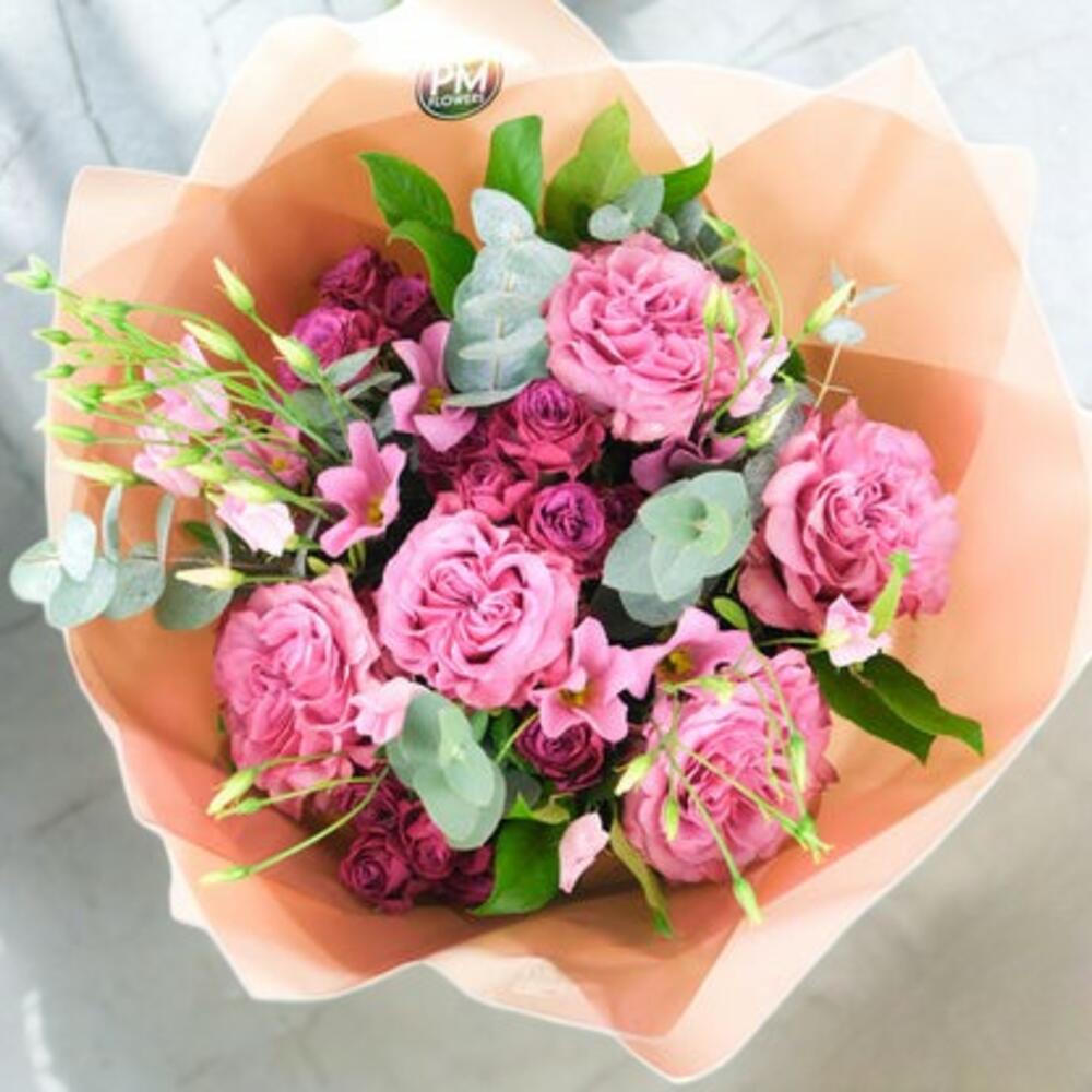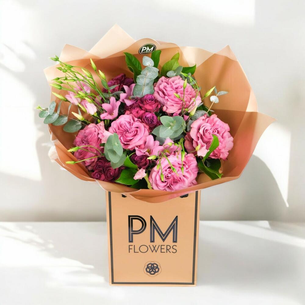 Make a bold statement with our Oh là là! bouquet – a chic and vibrant floral arrangement that radiates elegance and excitement. Crafted with premium cerise roses, rich purple spray roses, and delicate pink lisianthus, this hand-tied bouquet is the ultimate expression of modern romance. Accented with fresh eucalyptus and seasonal foliage, its a stylish choice for birthdays, anniversaries, or spontaneous moments of love and joy. Presented in our signature PM Flowers gift box, this bouquet is both a visual and fragrant delight. Care Instructions: To keep your Oh là là! bouquet fresh, place it in a cool, shaded area away from direct sunlight and heat sources. Check the water level daily and top up as needed. Change the water and re-trim stems at an angle every 2–3 days. Remove any wilted leaves or petals to maintain vibrancy. With proper care, your bouquet will stay lush and lovely for 5–7 days.