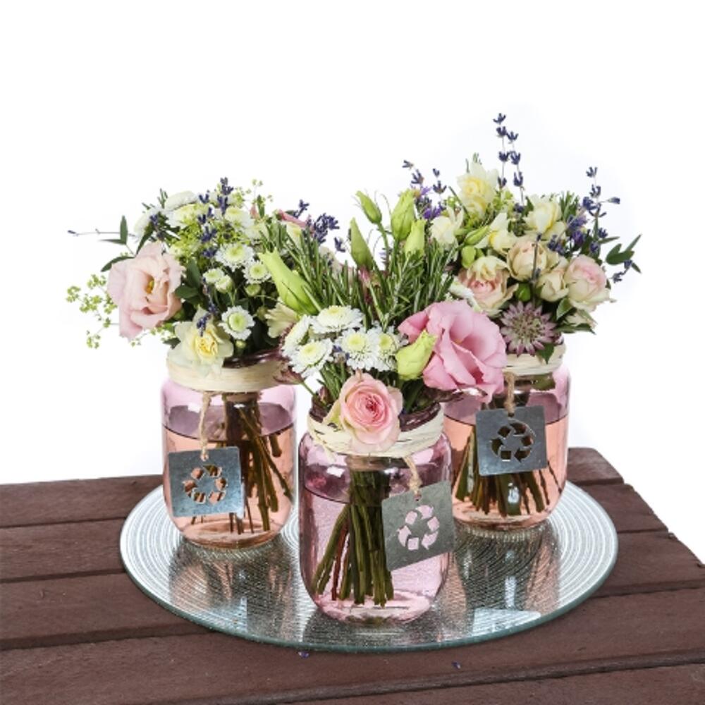 A gorgeous pastel trio of pink and white flowers. Mirror Not Included