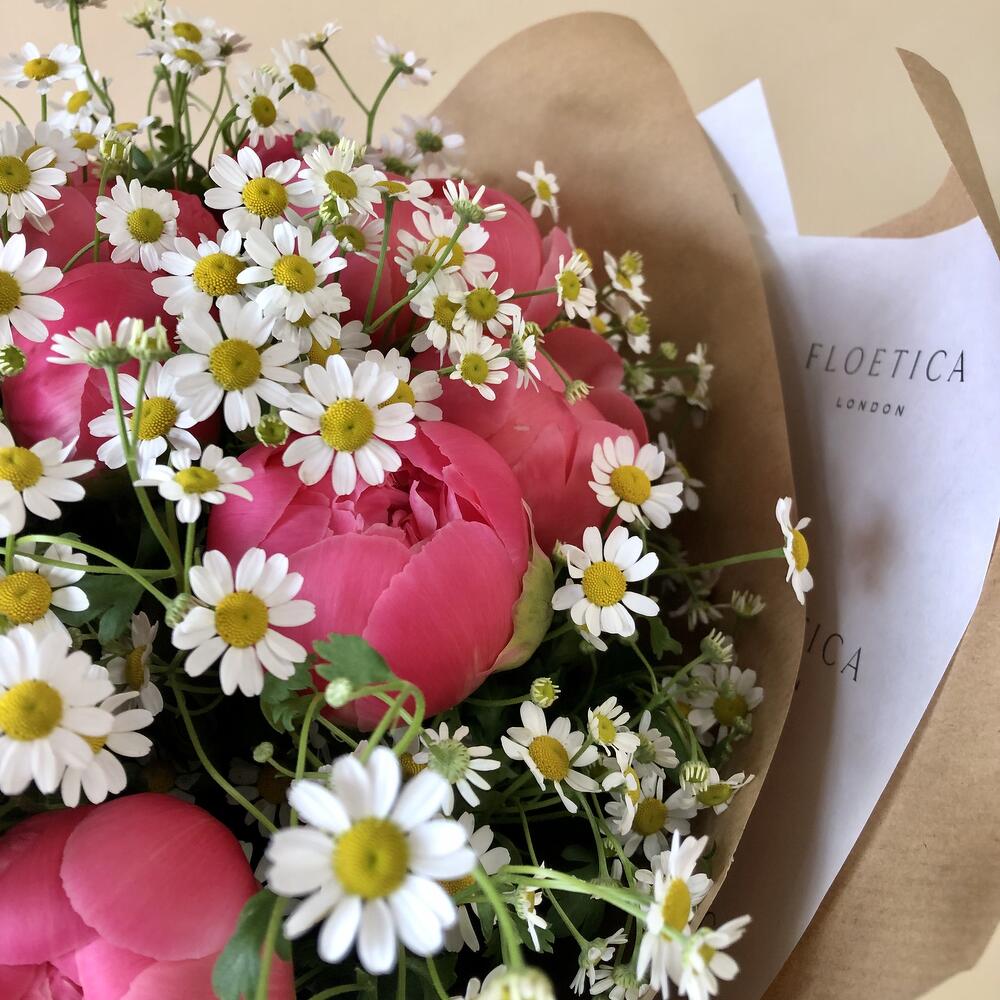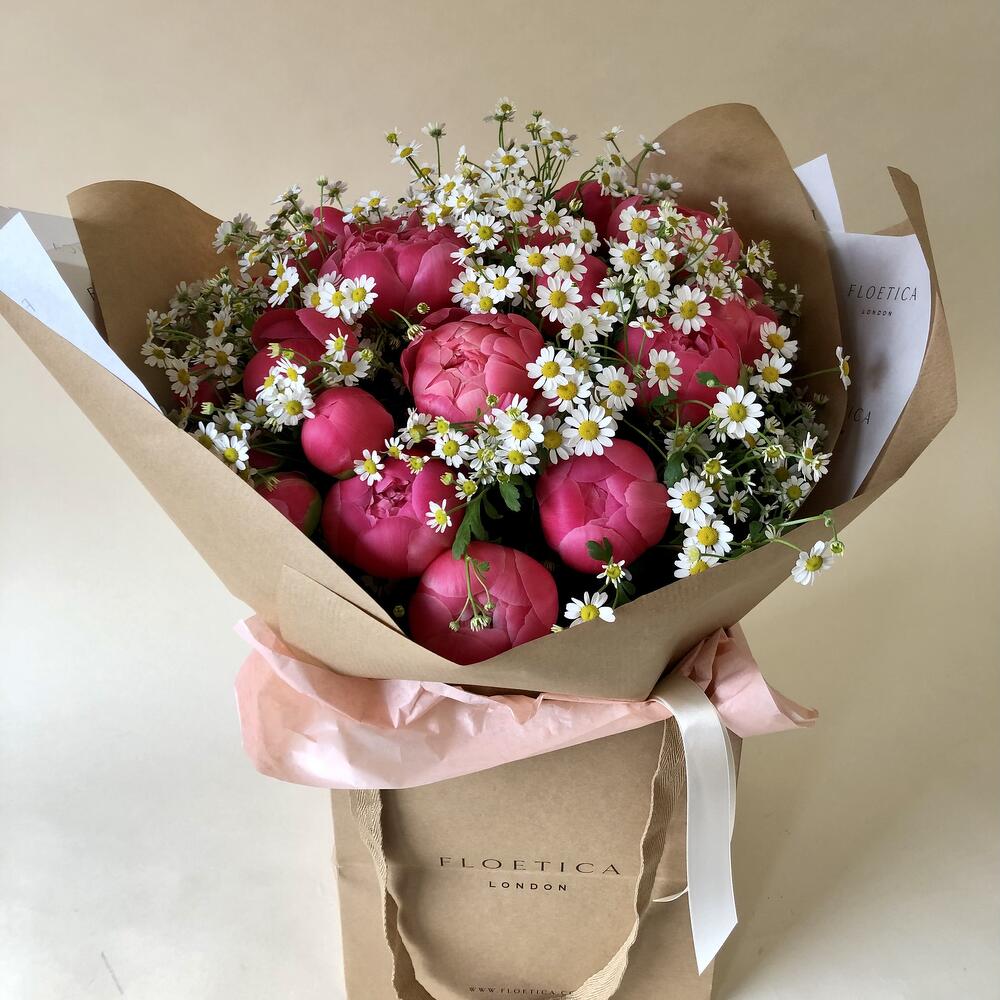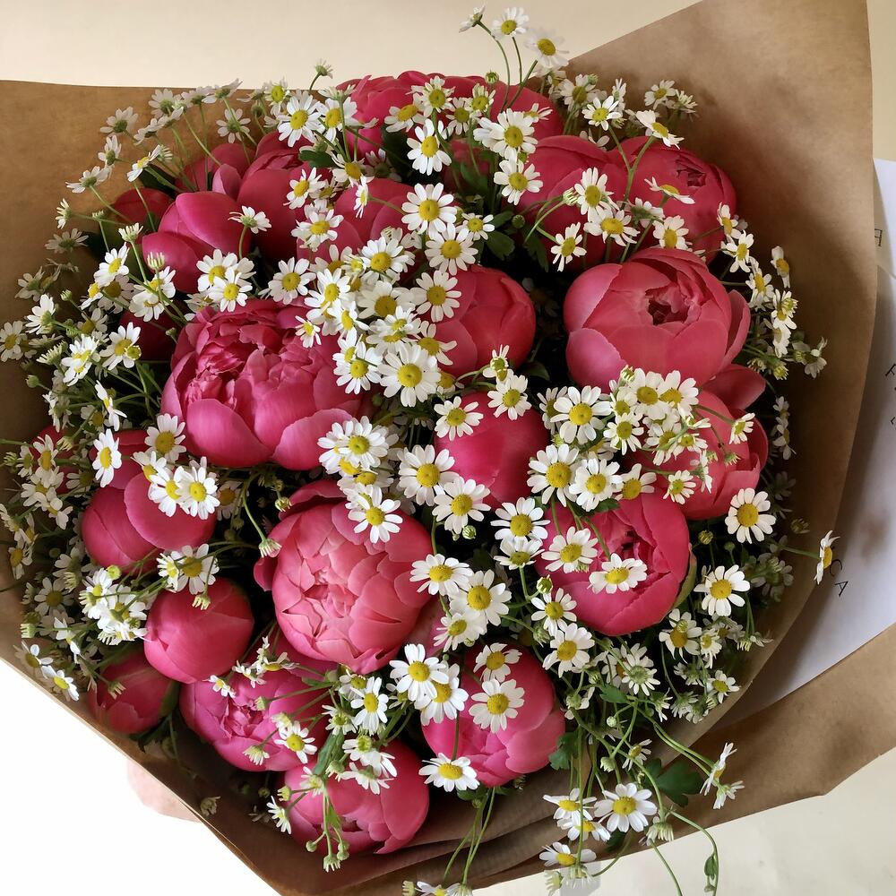 Ribbon - 1 pcs Peony - 10 pcs packaging - 1 pcs daisy - 3 pcs