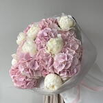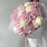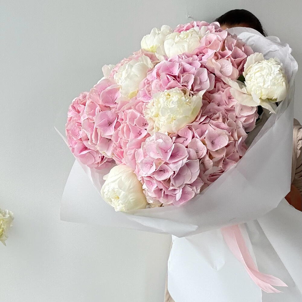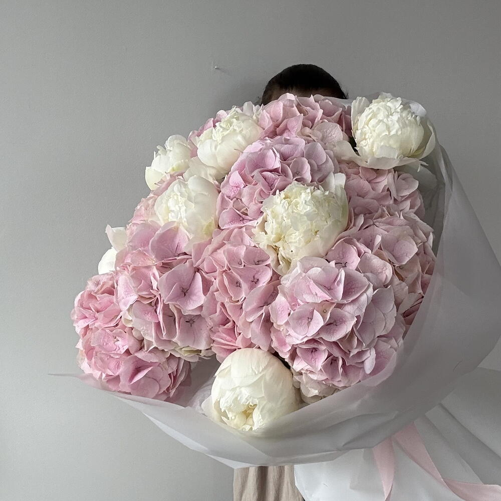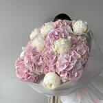 white peonies - 7 pcs pink hydrangea - 10 pcs