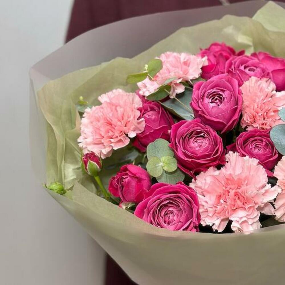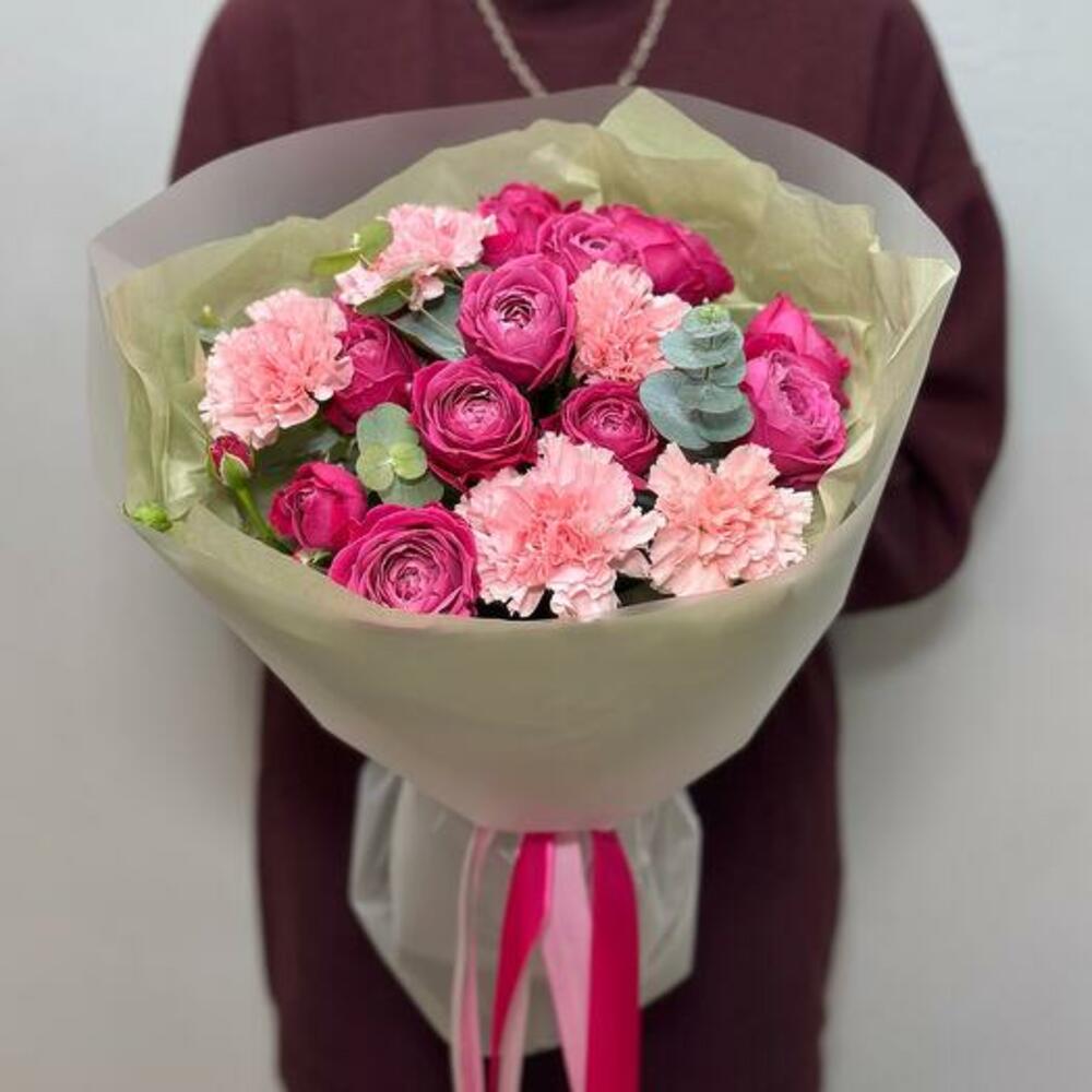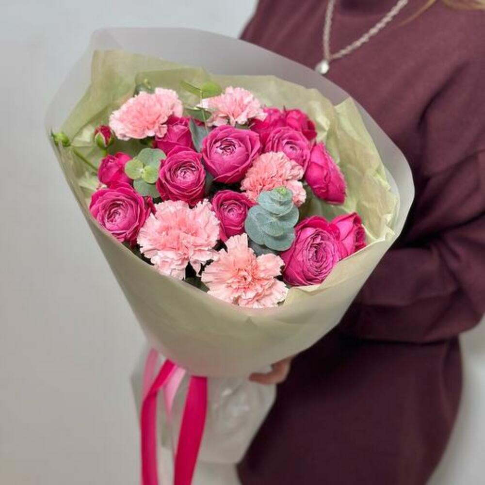 Eucalyptus - 1 pcs packaging - 1 pcs dianthus pink - 5 pcs peony spray rose - 3 pcs