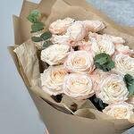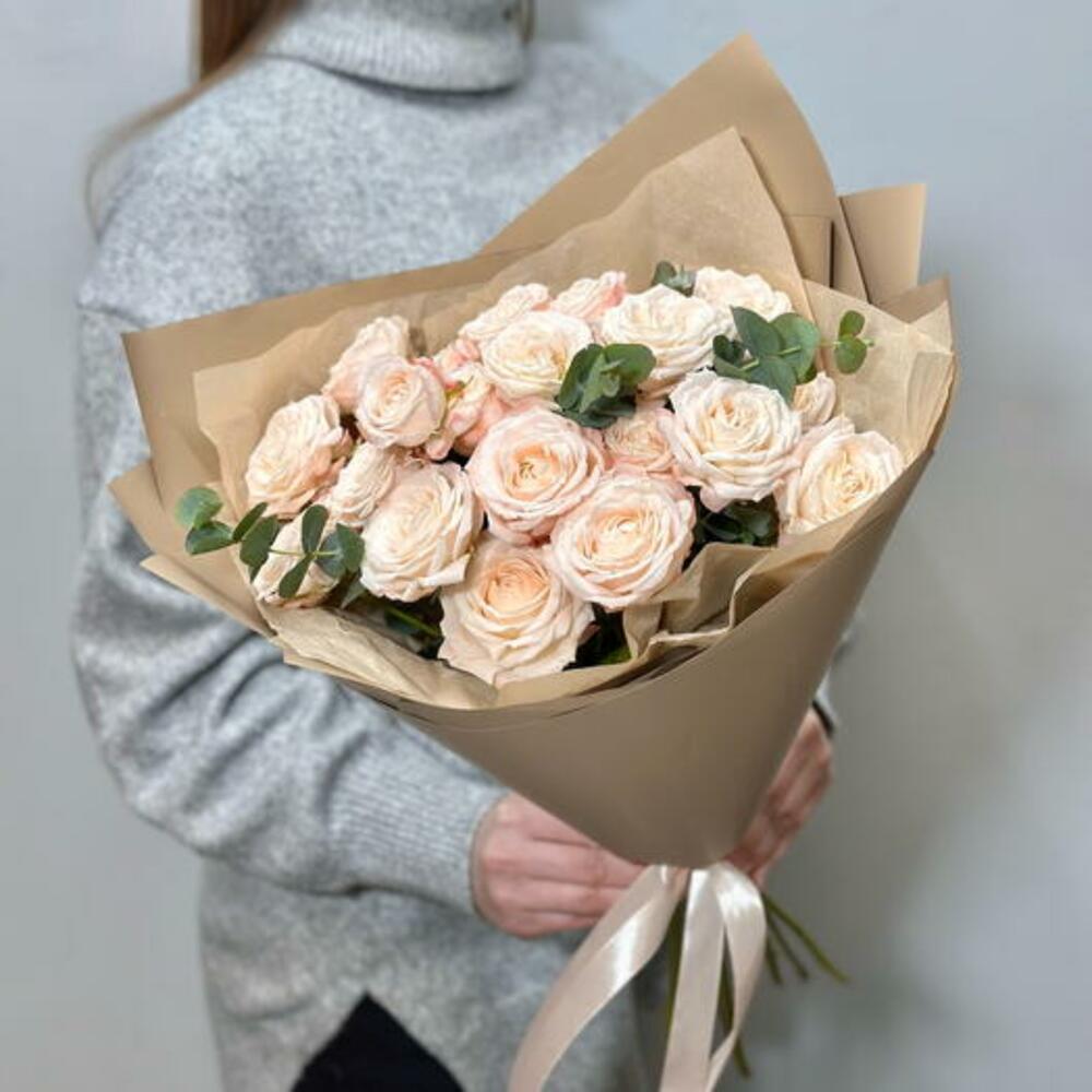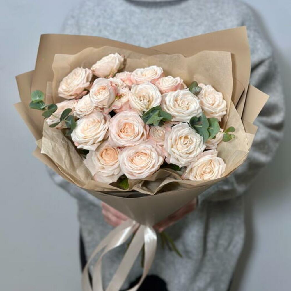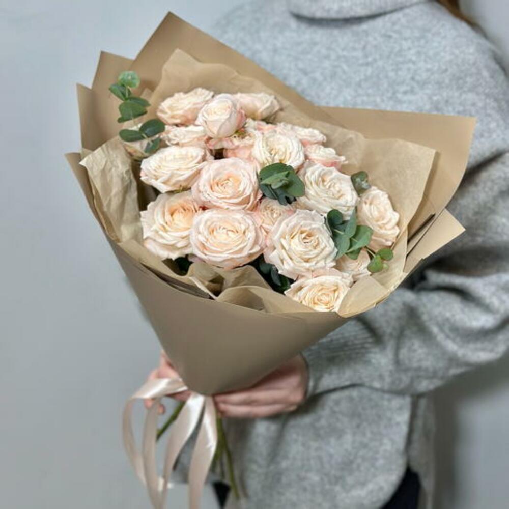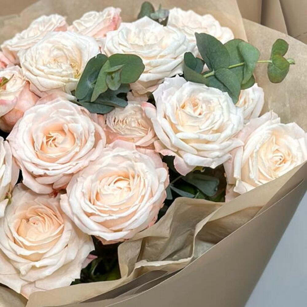 Immerse yourself in the delicate beauty of our bouquet, a captivating bouquet featuring creamy peony-like spray roses. This bouquet exudes a timeless charm and tranquility, making it a perfect choice for any occasion.