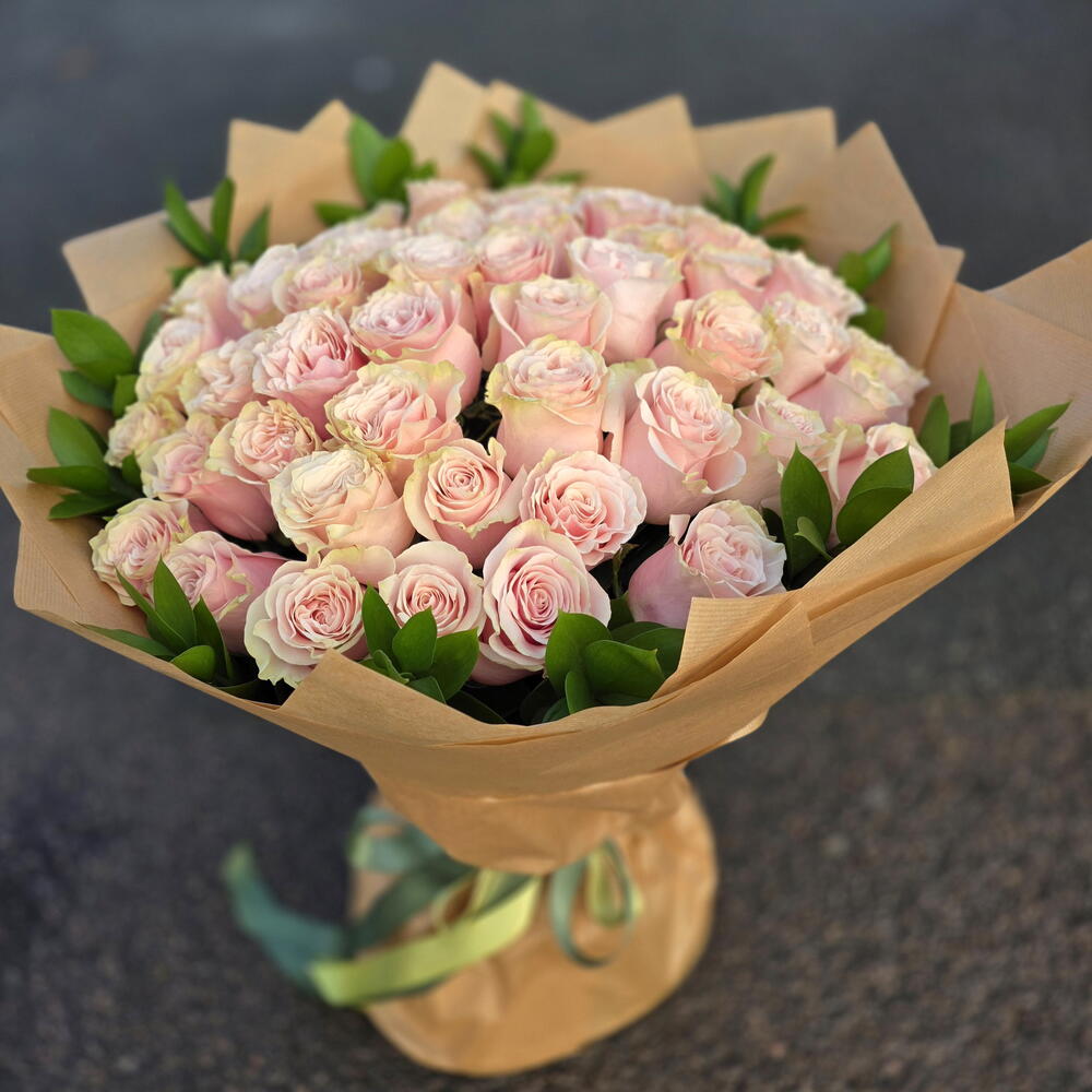 ruscus italian - 15 pcs pink mondial roses - 50 pcs