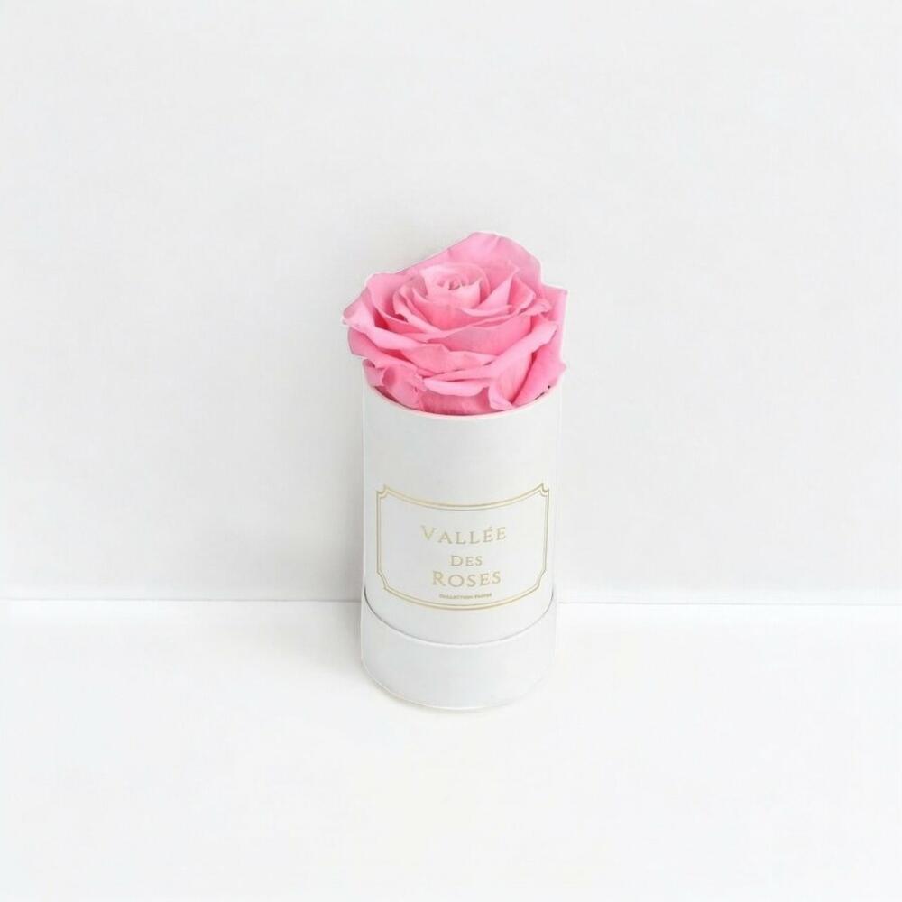 A preserved rose in soft pink – the color of grace, sweetness, and gentle affection. Housed in a white cylinder box with golden accents, this piece adds a romantic and refined touch to any interior. A timeless gesture of love or a charming addition to your space.