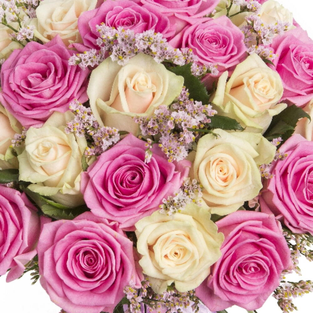 Limonium - 3 pcs Pink rose - 40 pcs White rose - 14 pcs