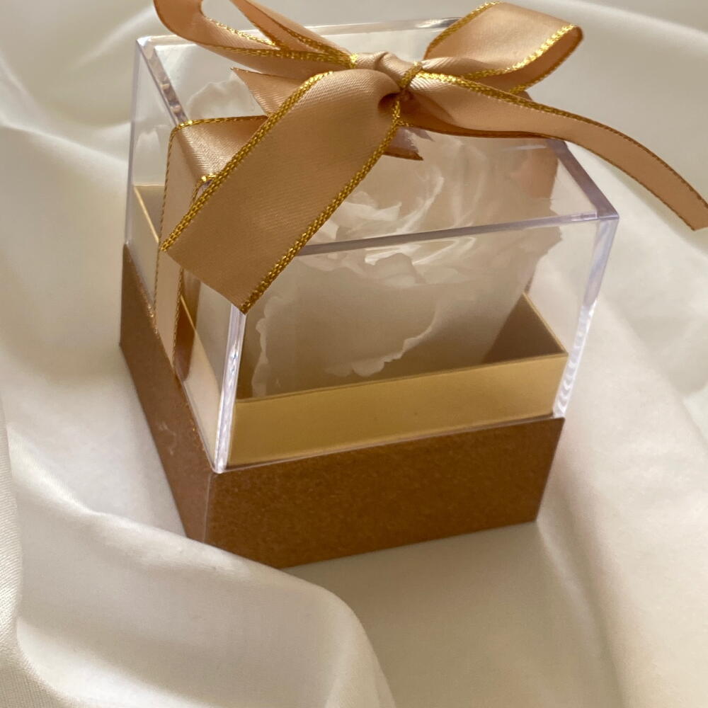 Beautiful white preserved rose in small square box suitable for any occasion:wedding,baby shower, birthday