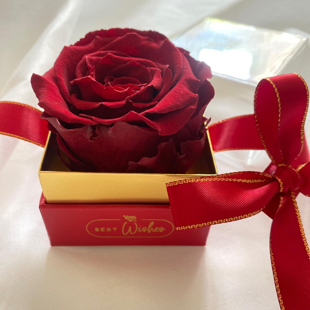 Beautiful Red preserved rose in small square box suitable for any occasion:wedding,baby shower, birthday