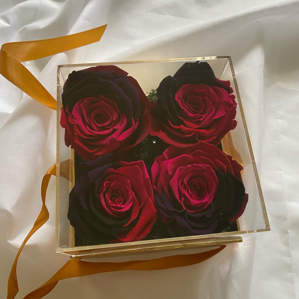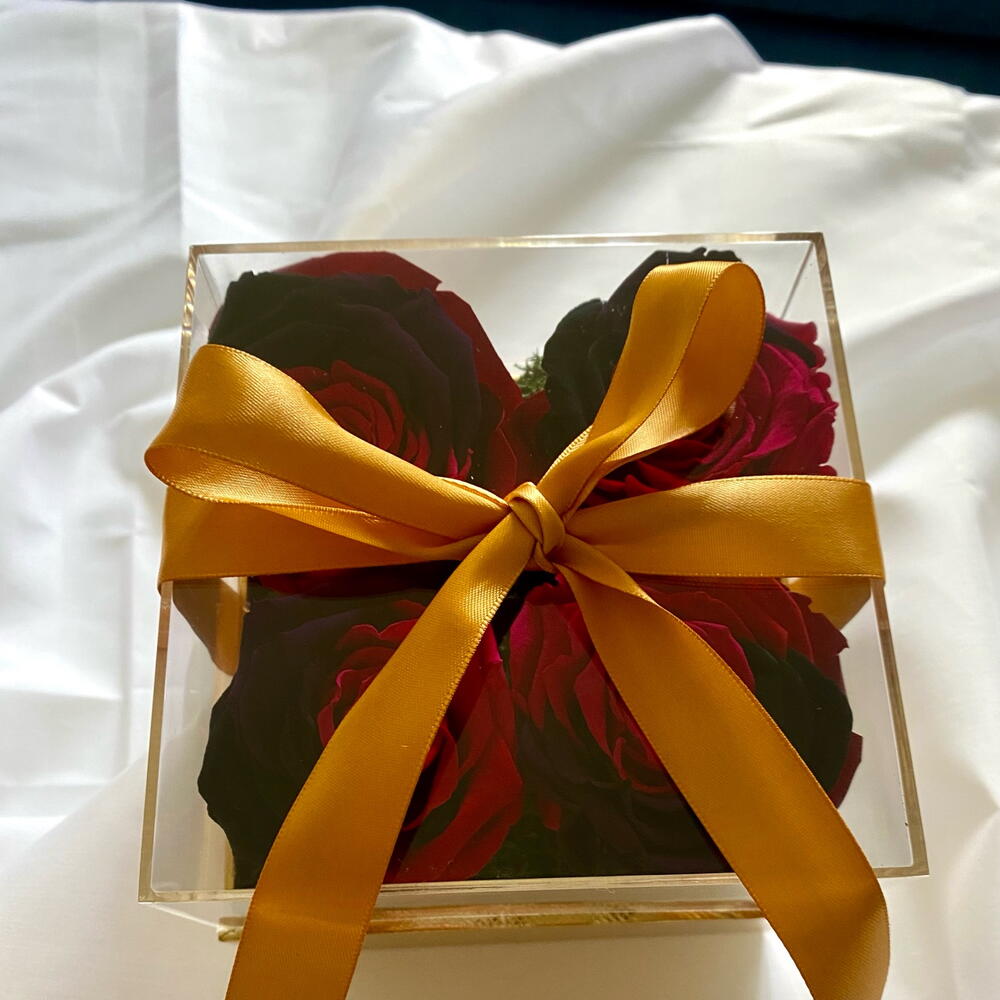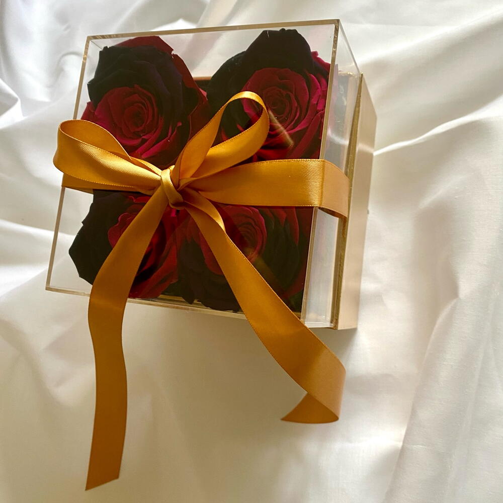 4 piece of Beautiful preserved Roses in golden square box for any occasion : wedding,baby shower, birthday gift ,ect