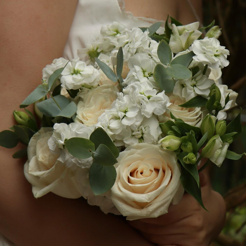 Eucalyptus - 4 pcs White rose - 5 pcs white hydrangea - 2 pcs