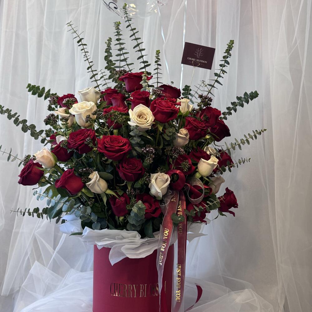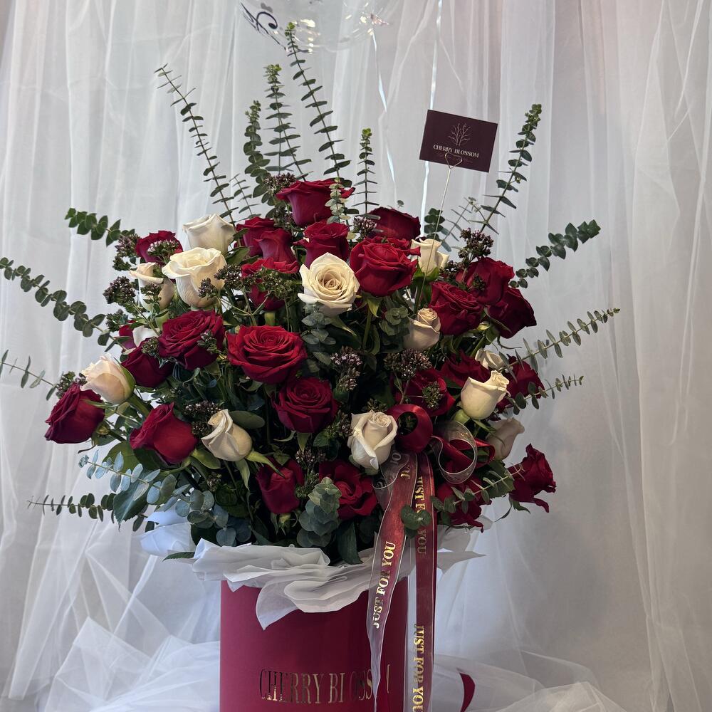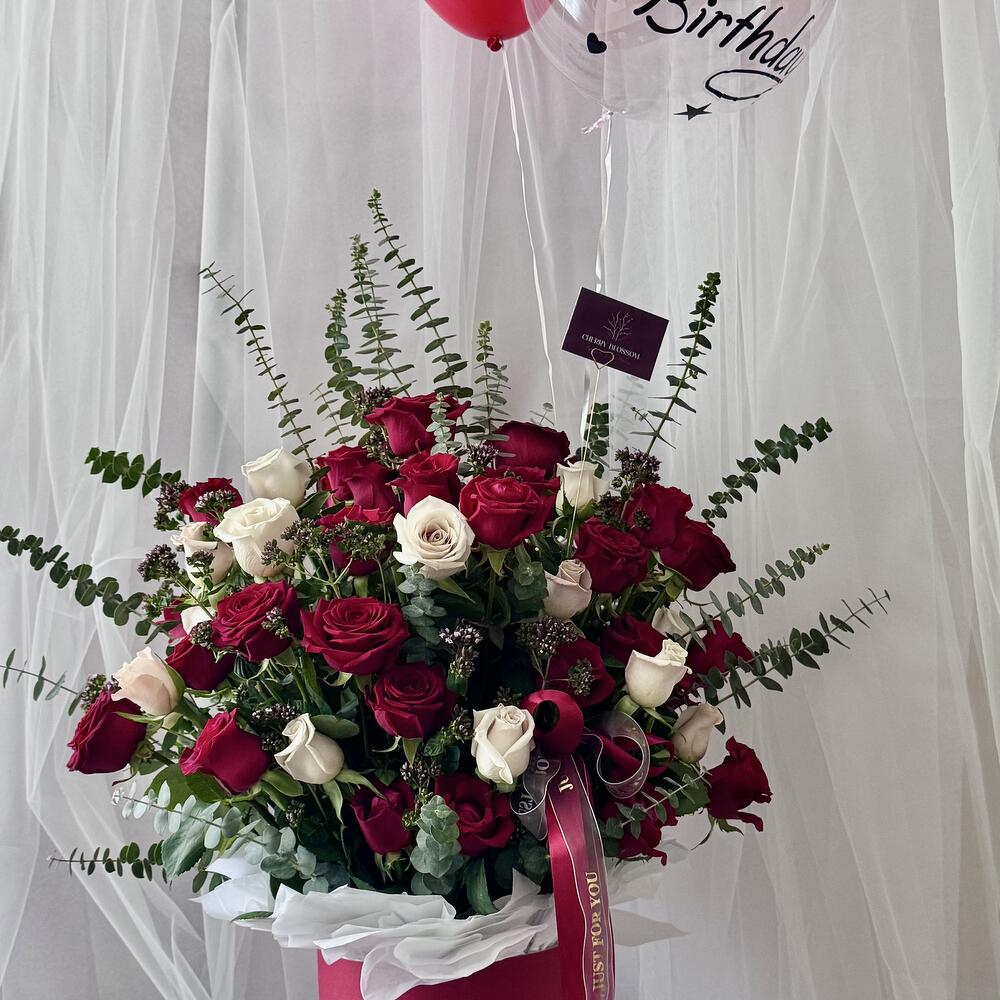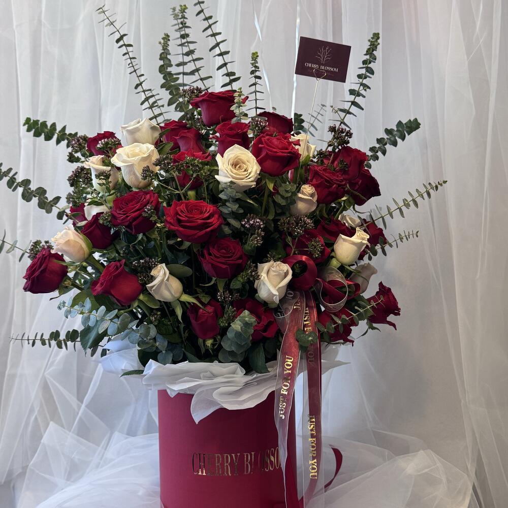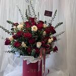 Immerse in the depths of passion and love with our Flowers in a Box, boasting a stunning assembly of 50 radiant Red Roses. Carefully selected and thoughtfully arranged, these blossoms promise to bring an extraordinary flair to any occasion. The perfect symbol of love and beauty elegantly presented in an opulent box, waiting to unveil its charm. Make your expression of love or friendship tangible and create an unforgettable moment with our heartwarming floral arrangement.