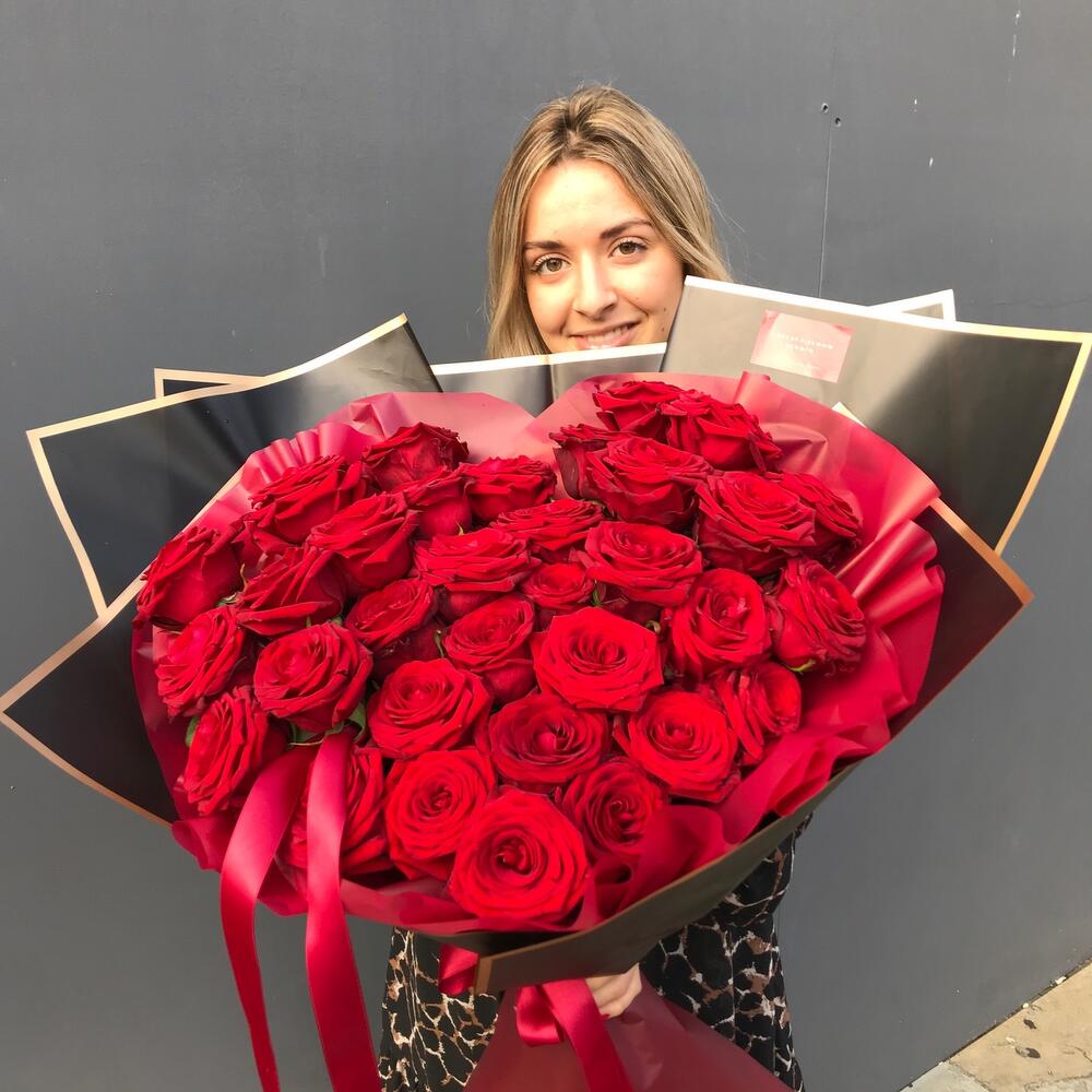 Passionate red roses floral arrangements are a timeless classic! Declare your feelings or simply delight your friends and loved ones with this luxurious gift.