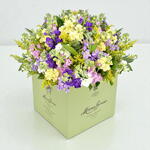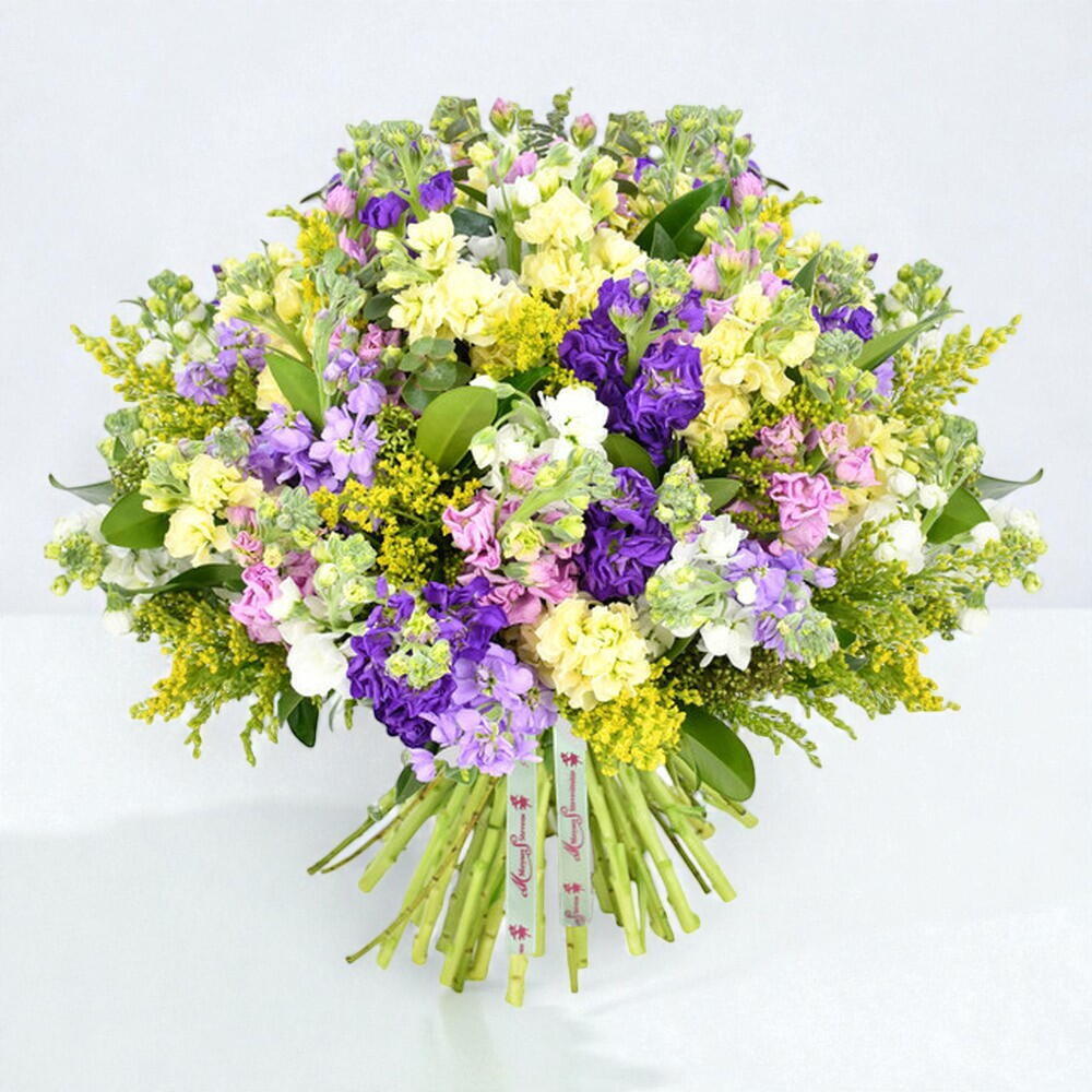 Ever-popular, eternally-irresistible, stocks are known for their sumptuous, sweet fragrance. And this bouquet does not disappoint. Featuring pink, purple, white and yellow stocks, it is completed by flashes of orange asclepia and seasonal foliage.