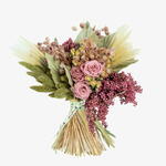 This exquisite bouquet features a harmonious blend of pepper berries, palms, goat grass, preserved roses, setaria, and nigella, creating a visually captivating display that requires no maintenance. Perfect for adding a touch of sophistication to any room or as a thoughtful gift.