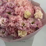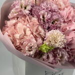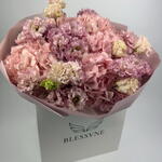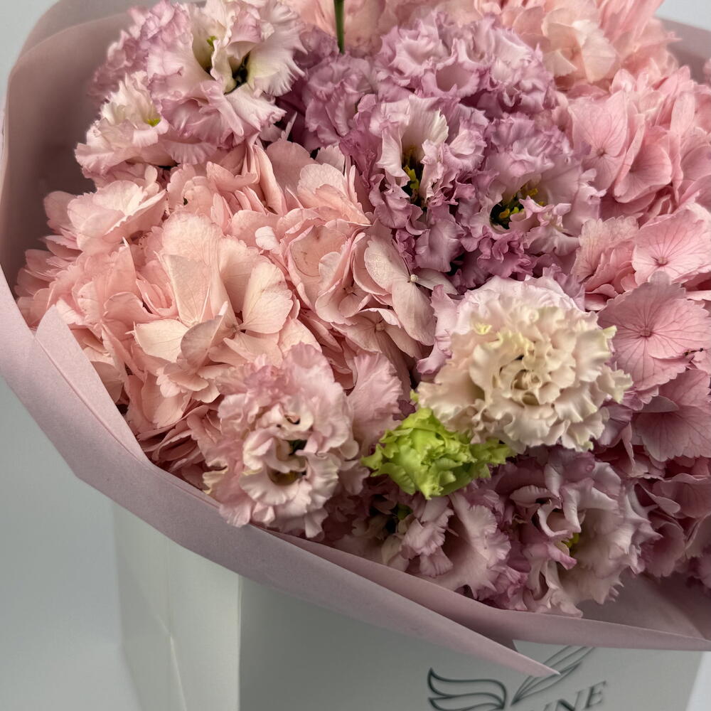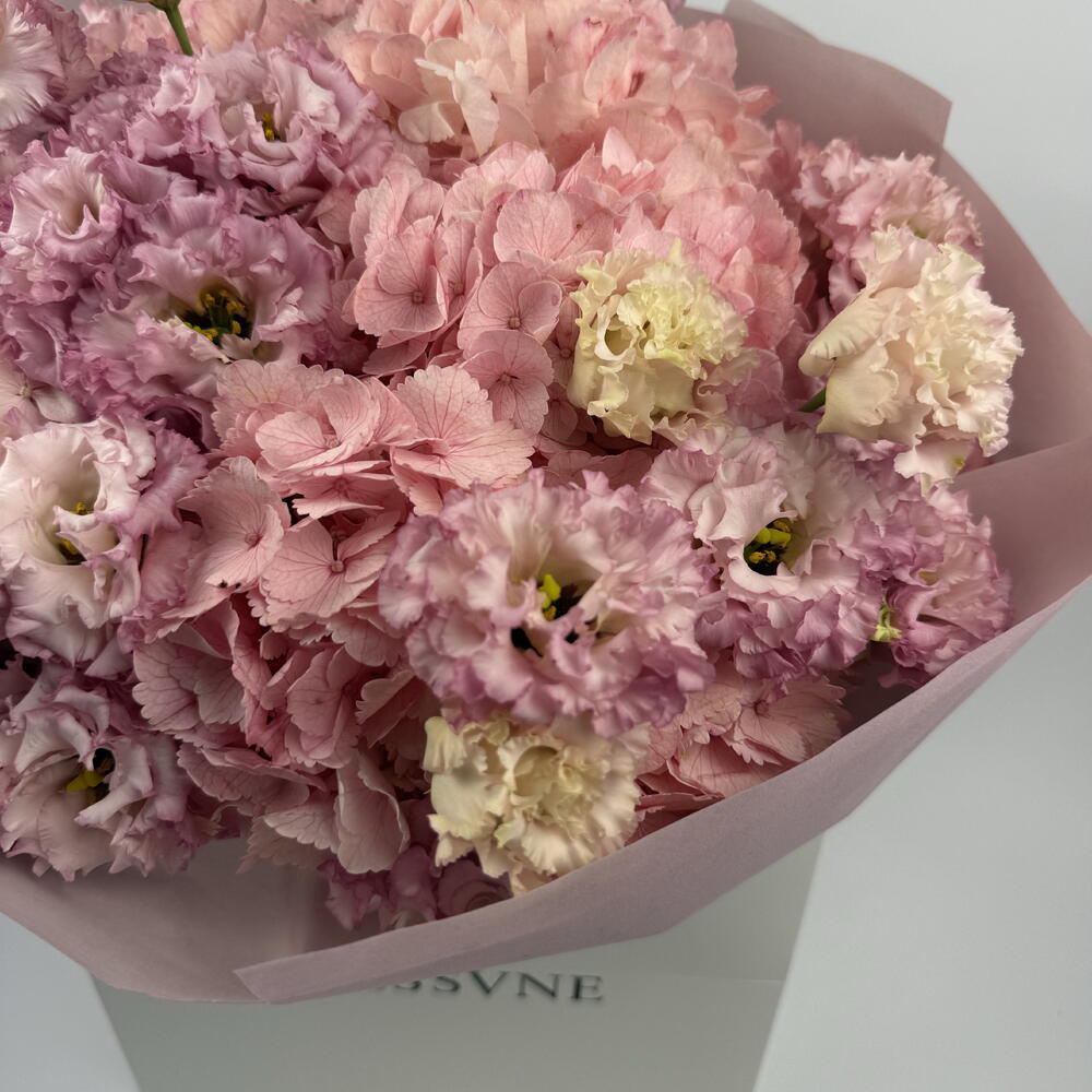 pink eustoma - 7 pcs spray carnations - 5 pcs pink hydrangea - 2 pcs decorative butterfly accent - 1 pcs