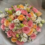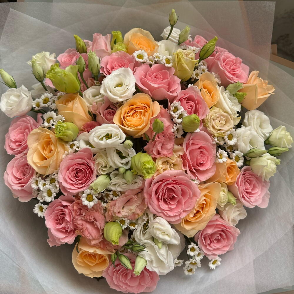 Eustoma - 15 pcs chamomile - 10 pcs rose - 20 pcs