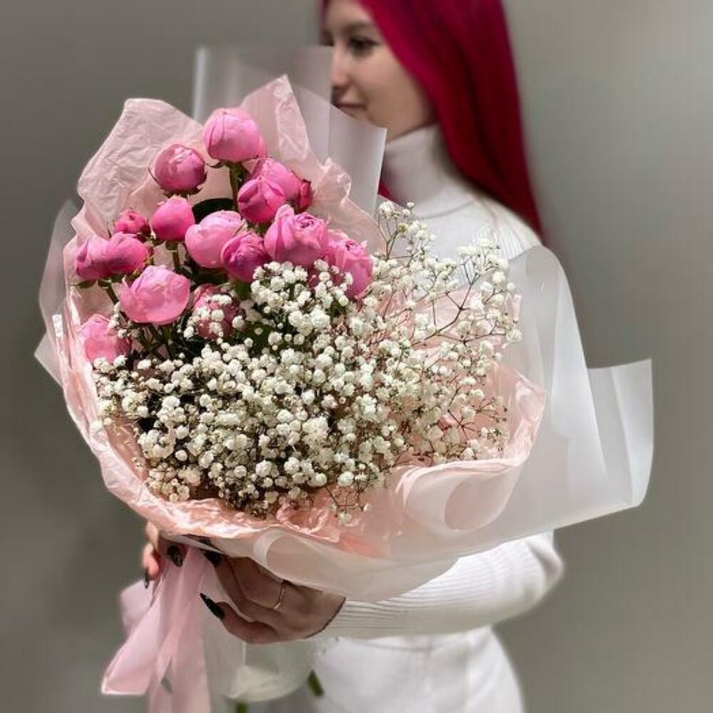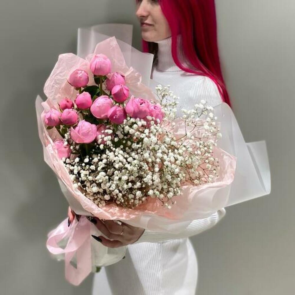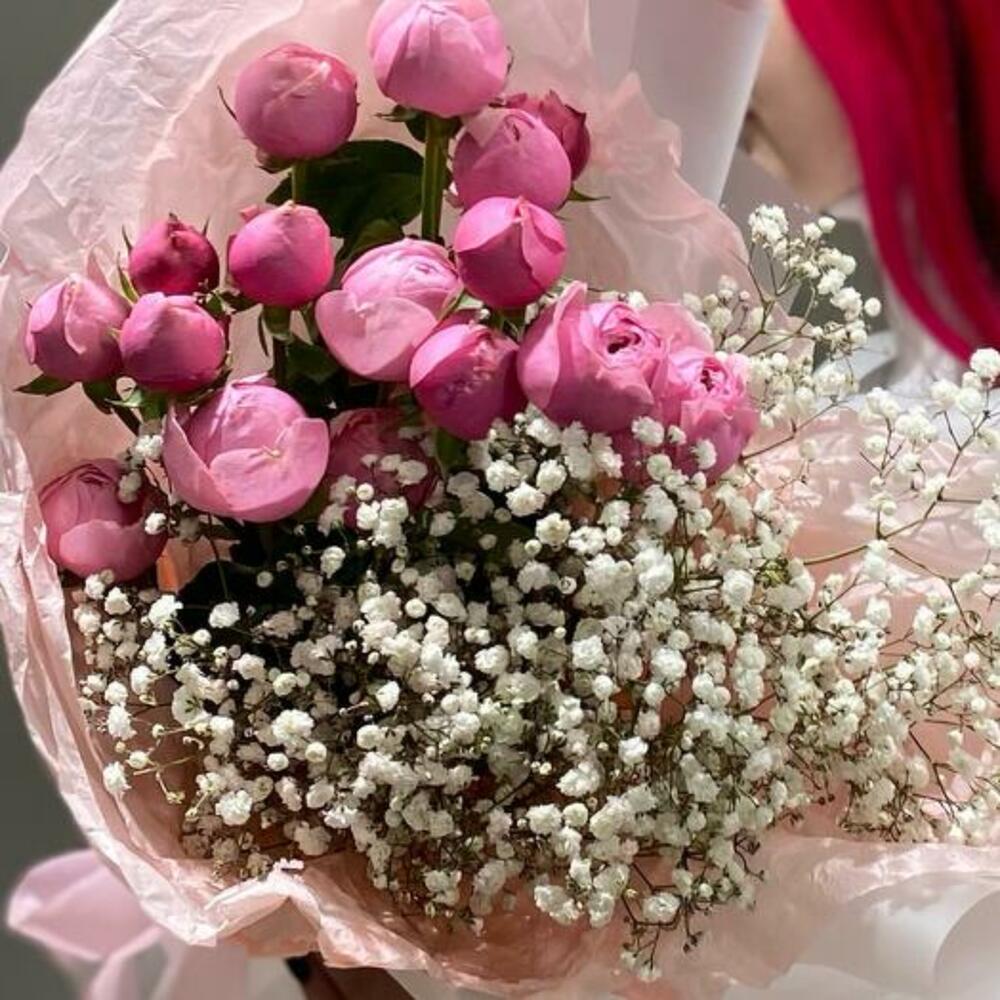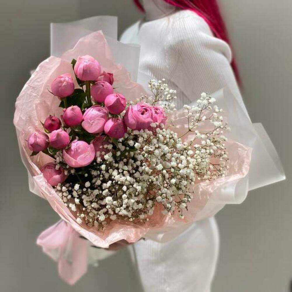 Gypsophila - 2 pcs packaging - 3 pcs silva pink spray rose - 3 pcs