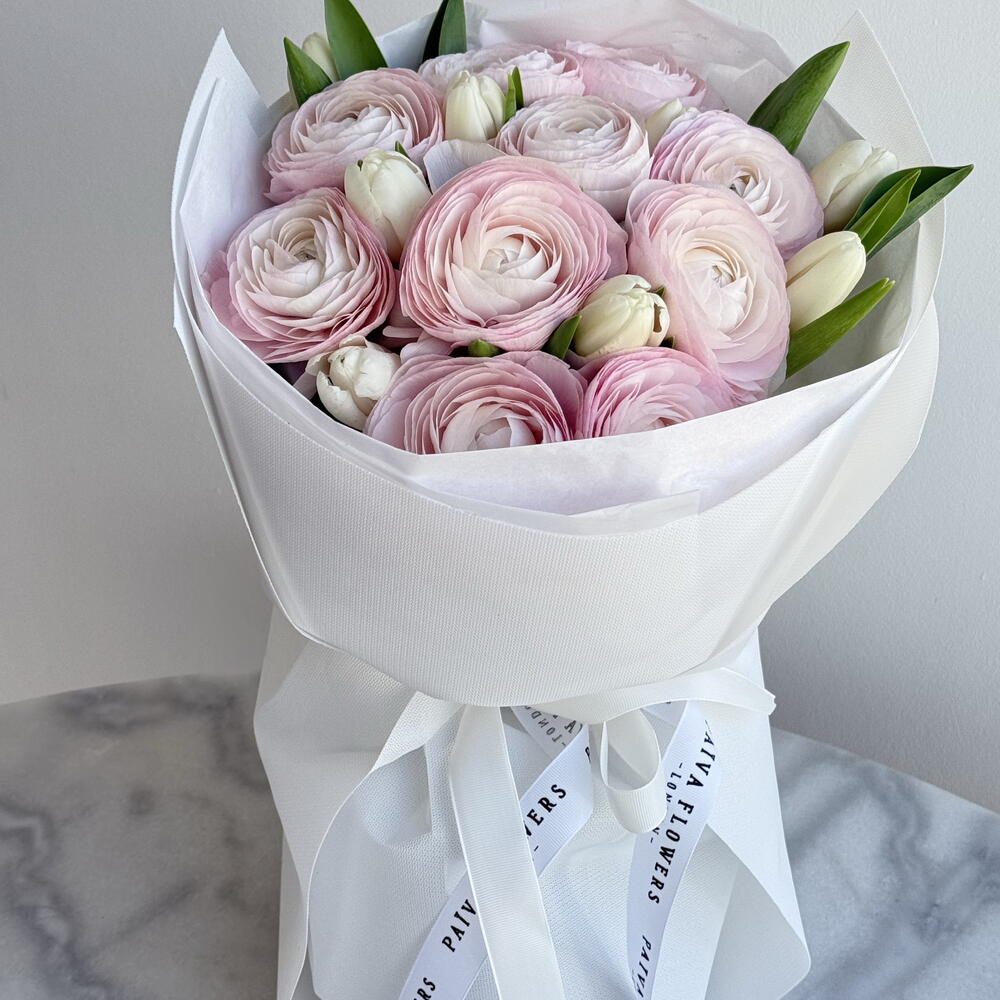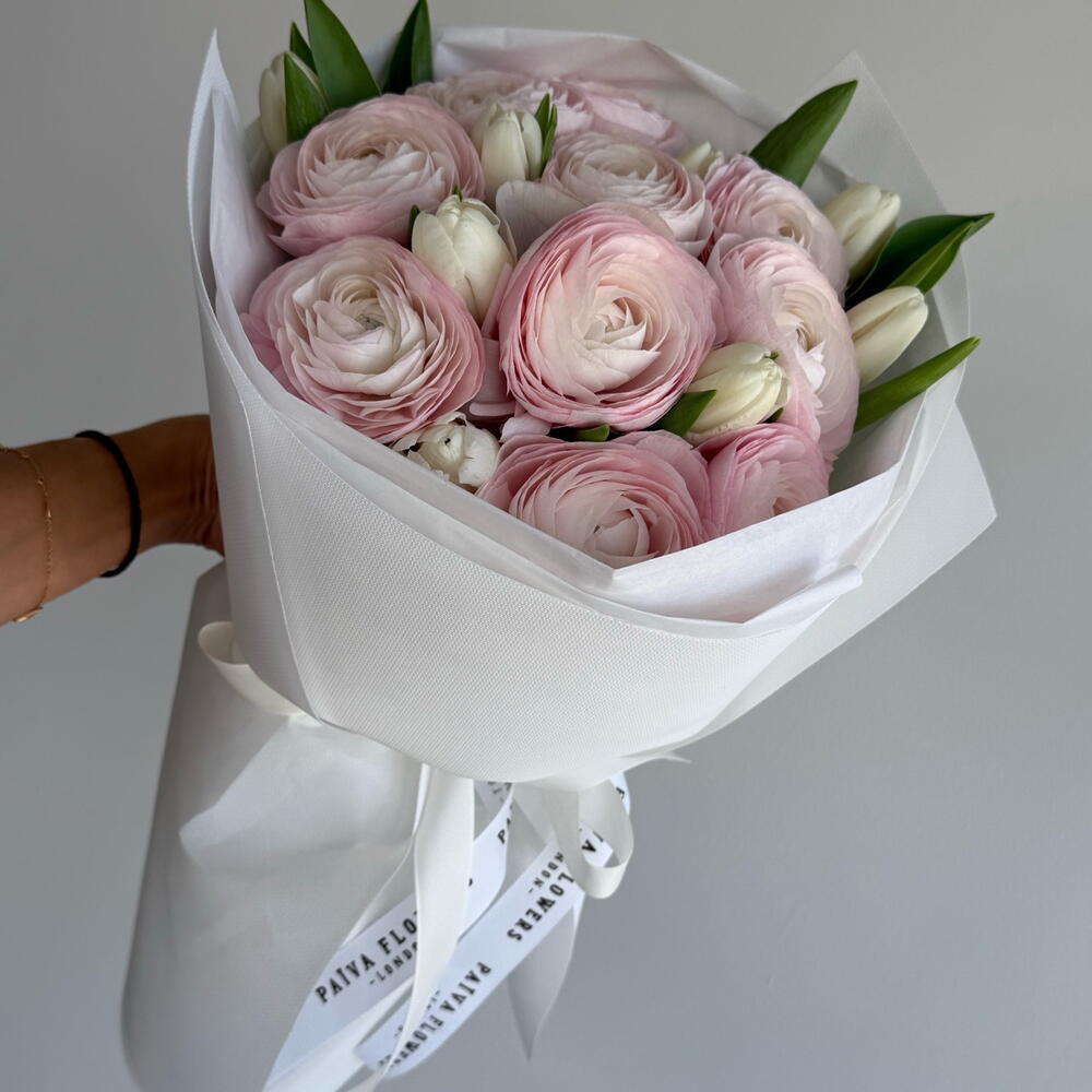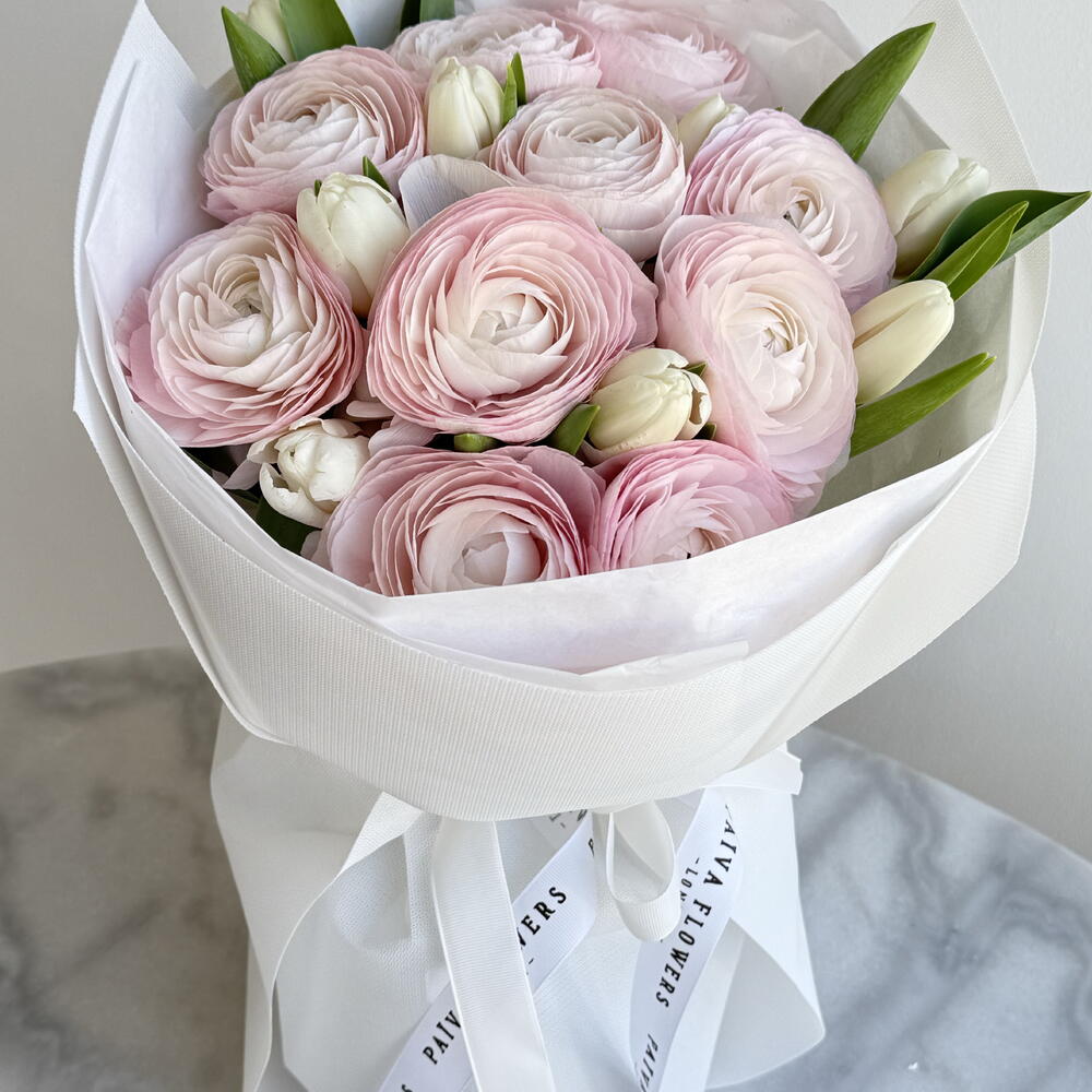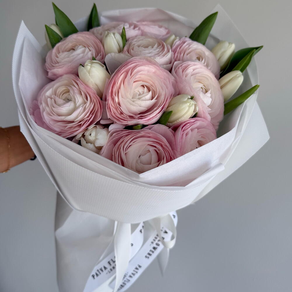 white tulips - 7 pcs ranunkulus hanoi - 10 pcs