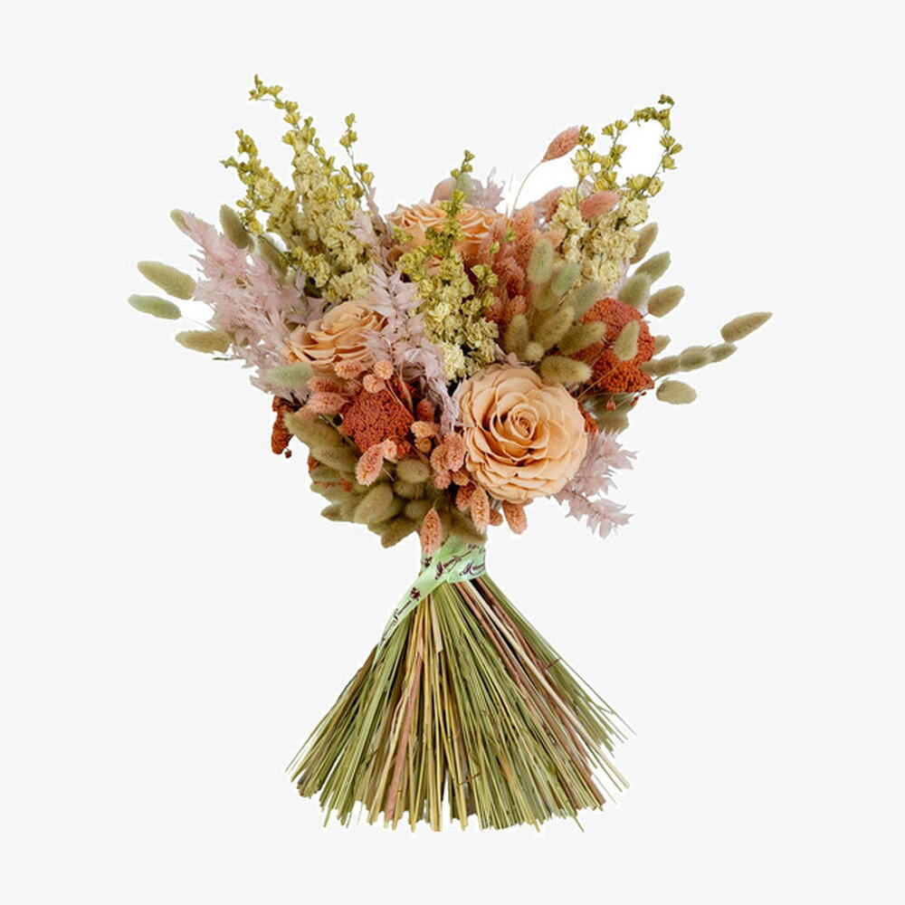preserved roses - 3 pcs bunch of bunny tales - 1 pcs bunch of phalaris - 1 pcs bunch of achilea - 1 pcs bunch of mix natural colour dried flowers - 1 pcs bunch of preserved ruscus - 1 pcs