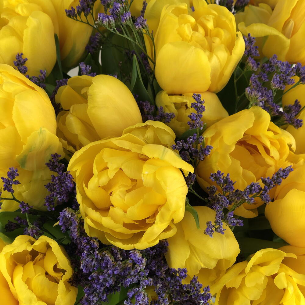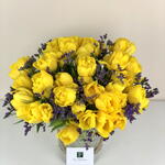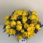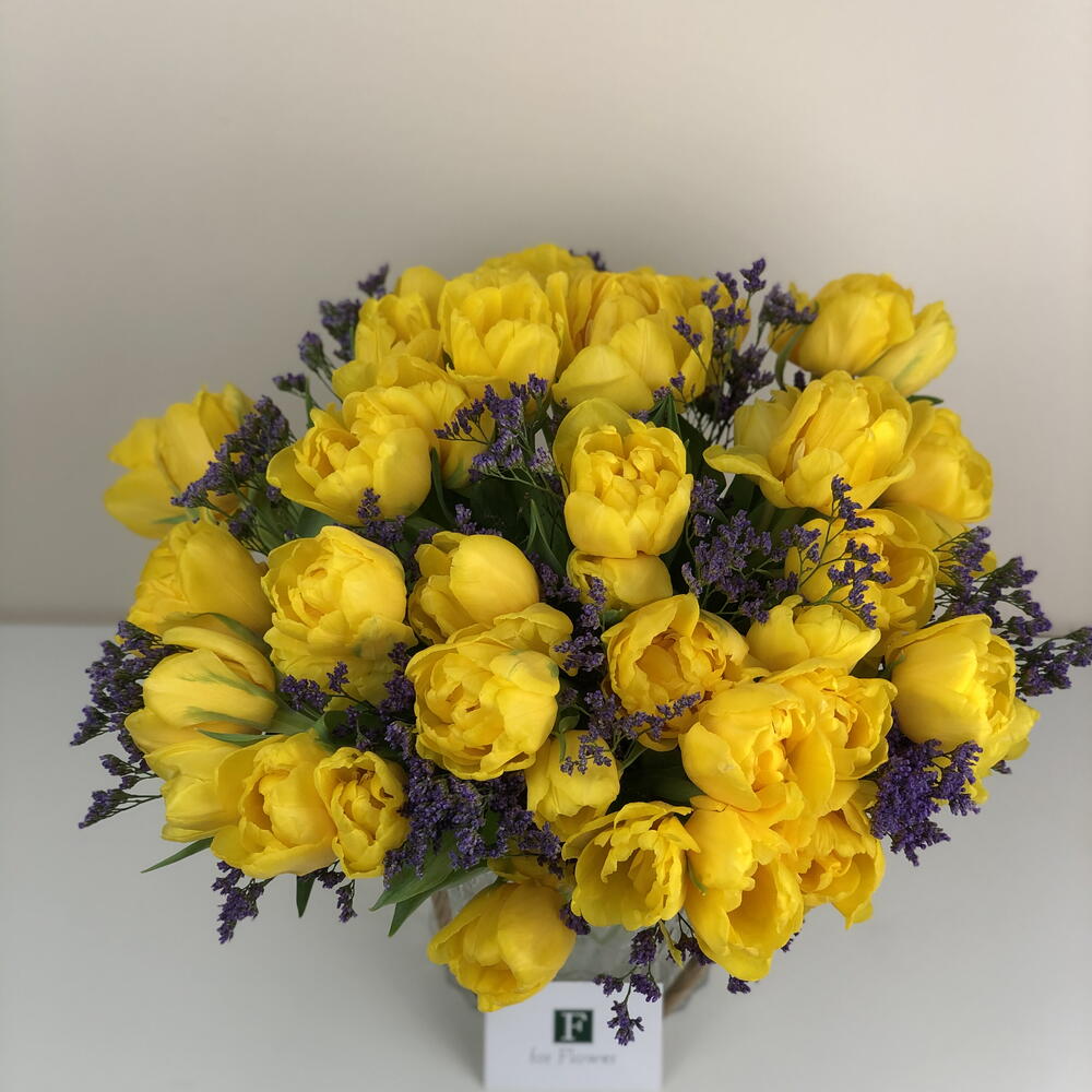 Behold this exquisite mono bouquet blessed with the delicate blend of 25 vibrant tulips and 5 pieces of whimsical Limonium. Beautifully composed with the freshest blooms, this enchanting bunch is the ideal way to convey your affection and create lasting memories. Its unique design and memorable appeal make it a perfect gift for any occasions or even for brightening up your own surroundings. The allure and radiance of tulips combined with the grace of Limonium are sure to mesmerize and spread delight wherever they go. Indulge in the mesmerizing beauty of this handcrafted arrangement designed to deliver joy and happiness.