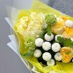 Presenting the Sunshine Delight bouquet, a radiant mix of vibrant blooms that brighten any day. This stunning arrangement features cheerful yellow and white flowers, elegantly wrapped in bright, designer packaging. Ideal for bringing warmth and joy to any occasion, this bouquet is a perfect way to express your sunny sentiments.