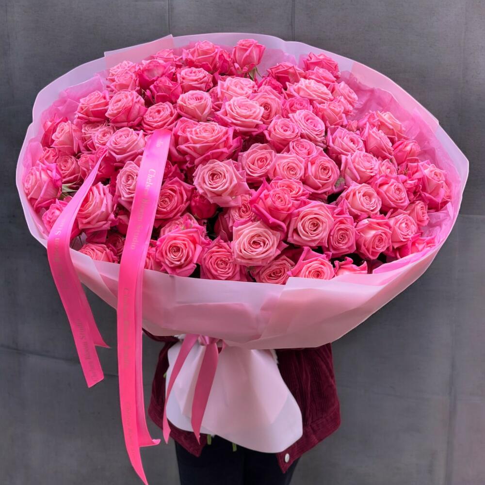 The Sweet Bubbles bouquet is a radiant symphony of 101 premium pink roses, exuding joy, romance, and timeless beauty. Wrapped in delicate pastel pink paper and finished with satin ribbons, this voluminous bouquet is designed to make a grand impression. Whether you’re celebrating love, friendship, or a milestone, this lush arrangement delivers your message with elegance and charm. Care Instructions: Keep the bouquet in a cool space, away from direct sunlight and heating sources. Change the water daily if unwrapped and placed in a vase, and trim the stems at an angle to help the roses absorb water. Avoid exposure to extreme temperatures.